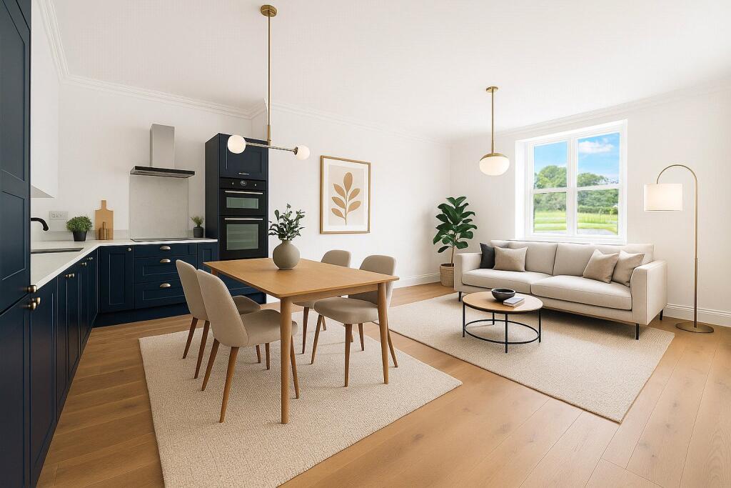 ***READY TO MOVE INTO*** A stunning GROUND FLOOR APARTMENT with a 23ft OPEN PLAN living area. Finished to a HIGH SPECIFICATION with fully integrated NEFF appliances, ENGINEERED OAK FLOORING and UNDERFLOOR HEATING. BEAUTIFUL COUNTRYSIDE VIEWS with access to 4 ACRES of GARDENS and just 6...