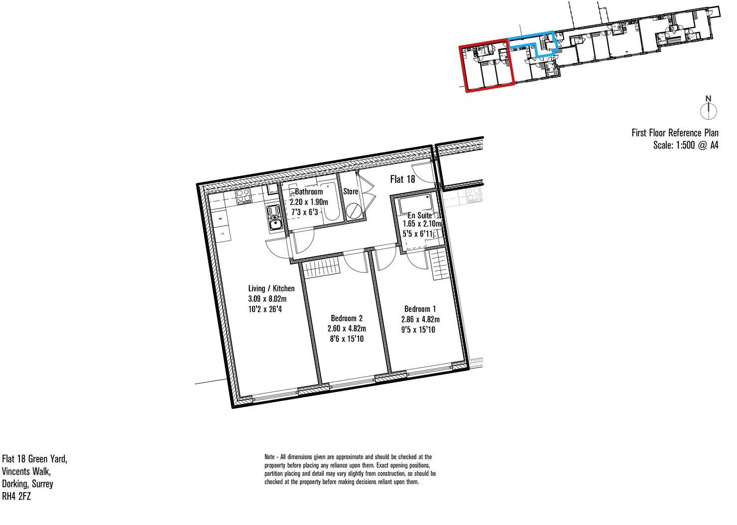 50% SOLD *SPACIOUS TWO BEDROOM APARTMENT* Plot 18 is a generously sized two-bedroom apartment located on the first floor of the highly regarded Green Yard development in Dorking. The apartment features a large open-plan kitchen/living area, a spacious principal bedroom with ensuite show...