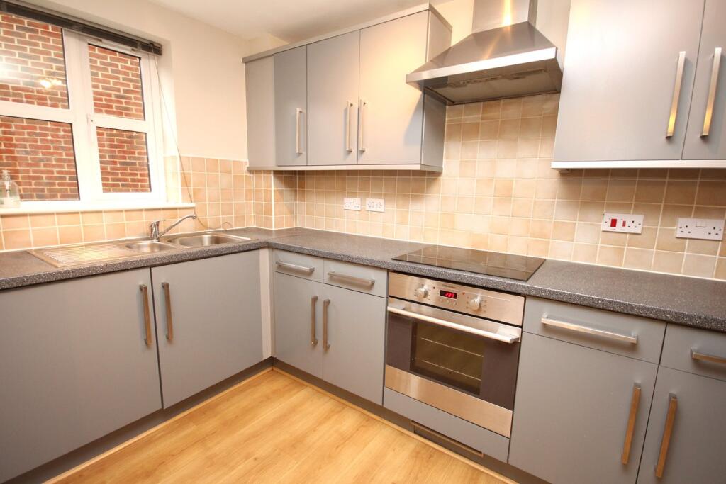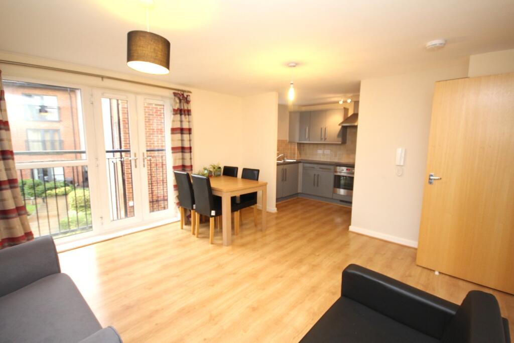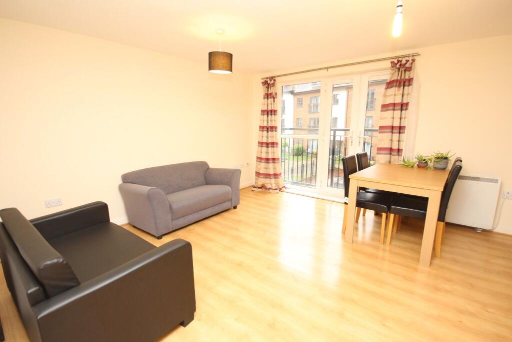 Well presented two bedroom first apartment in modern central development minutes’ walk from the town centre & mainline station. Good size kitchen with access to spacious lounge/dining area with French doors and Juliet balcony which overlooks the communal gardens. The main bedroom ben...