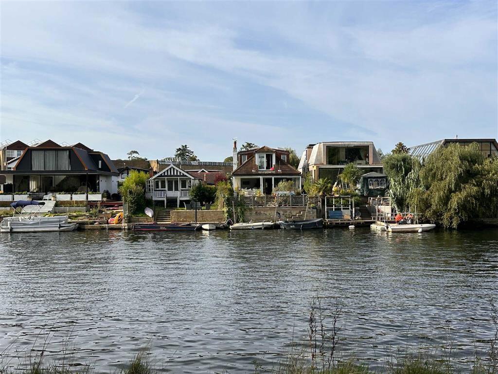 A rare opportunity to purchase a plot on this idyllic private island with the benefit of planning permission for a new 2,583 sq ft four bedroom house over two floors which overlooks The Thames.