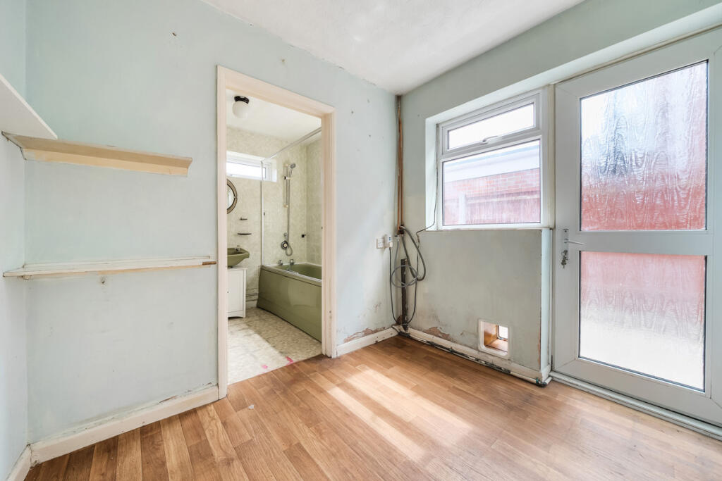 The property is located on Woolston Road, in Netley Abbey, Eastleigh. Netley Abbey Junior and Infant schools are located within 1.02 KM, both holding a ‘Good’ Ofsted rating. Netley train station is also within close proximity, at just 0.58KM. The internal photos suggest that the property requires some modernisation and renovation. The kitchen and bathroom appear dated. Some rooms show signs of cosmetic wear and tear. The property has a good-sized garden. With a list price of £300,000 and a size of 965 sqft, the price per square foot is approximately £311. The average price per square foot in the area is £414. Nearby listings show similar properties selling for between £280,000 and £600,000.