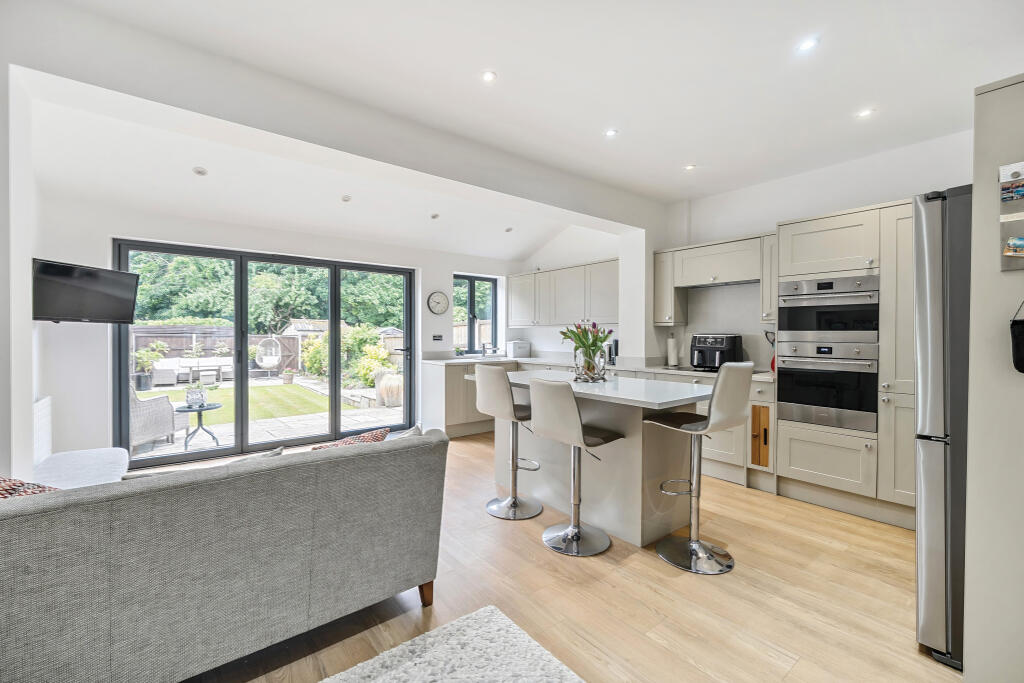 A beautifully presented and wonderfully light and airy 4 bedroom semi-detached house measuring almost 1800sq feet (including garaging) located moments from Worcester Park station and high street. It has a contemporary open-plan kitchen dining living room with double doors opening onto a sitting r...