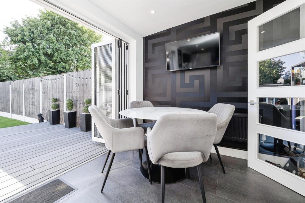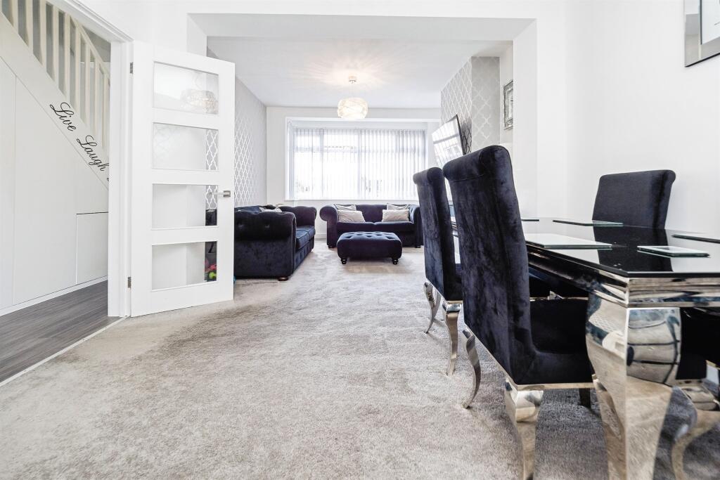 A stylish three-bedroom home with a pristine interior, spacious lounge, modern kitchen/diner, chic garden, driveway parking, and easy access to schools and transport.
