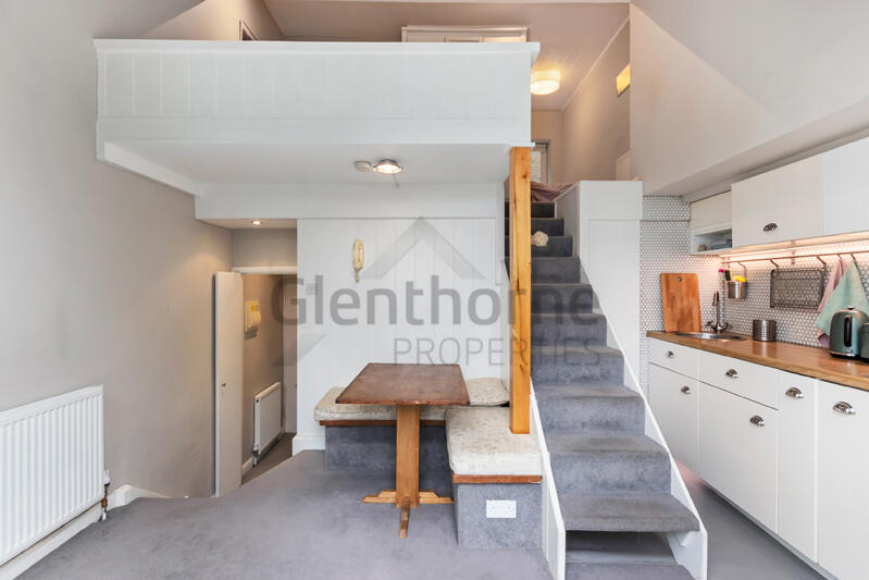 Unique galleried studio apartment with River views.