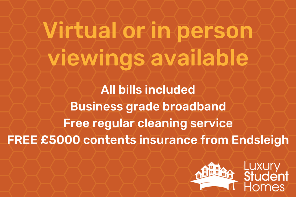 Perfect for small groups looking for some more space! Fully furnished student house, all bills included UNCAPPED USAGE! Superfast Virgin broadband, free regular cleaning service for communal areas. Washing machine, tumble dryer & dishwasher plus a 50" TV in the lounge.
