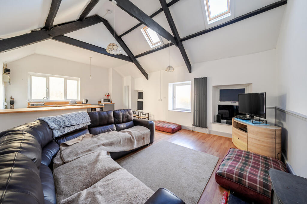 This is a two-bedroom semi-detached house in Llanwnnen, Lampeter. The property offers 730.87 sqft of living space and is listed for £90,000. While the location is rural, the property benefits from a decent-sized garden and appears to be reasonably well-maintained internally. The price per square foot is significantly below the local average, suggesting good value. However, the exterior condition and some interior clutter suggest some renovation may be required.