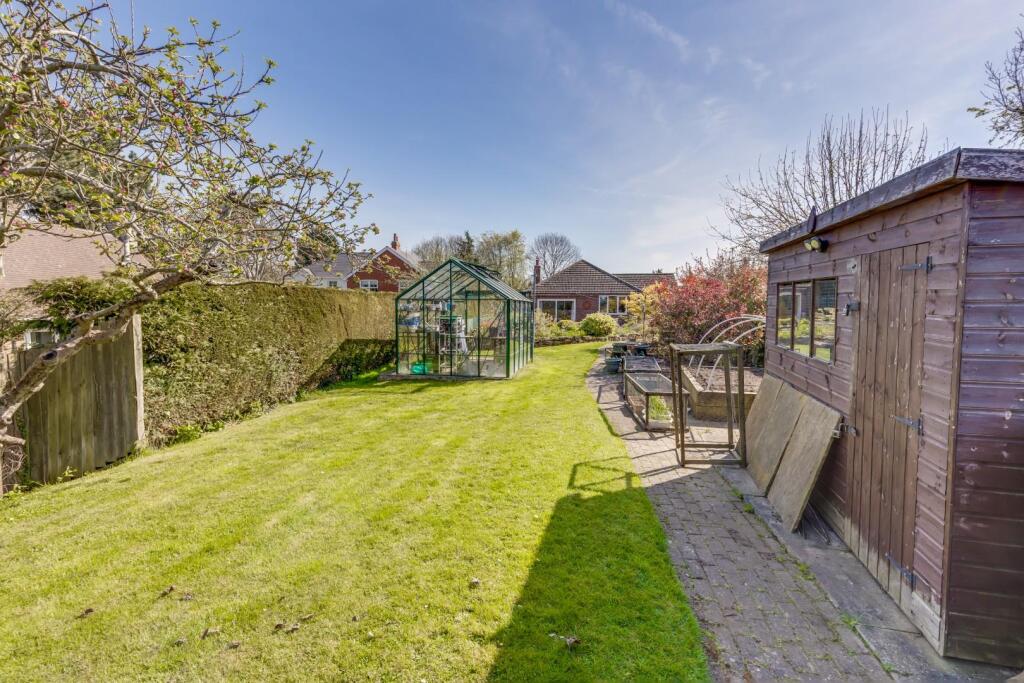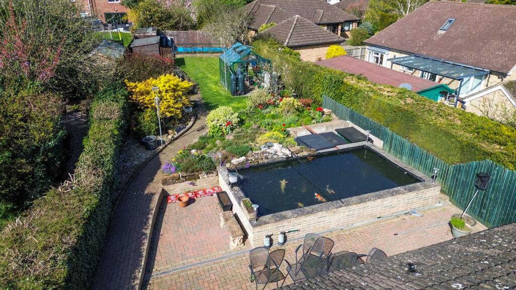 Based on the photographs, the property appears to be in good condition. The interior is well-maintained and modern, with a recently updated kitchen and bathroom. The exterior also looks well-kept, with a neat garden and driveway. There is evidence of some traditional features, but overall, the property presents as modern and comfortable. The property benefits from a large garden with a pond, greenhouse, and shed.