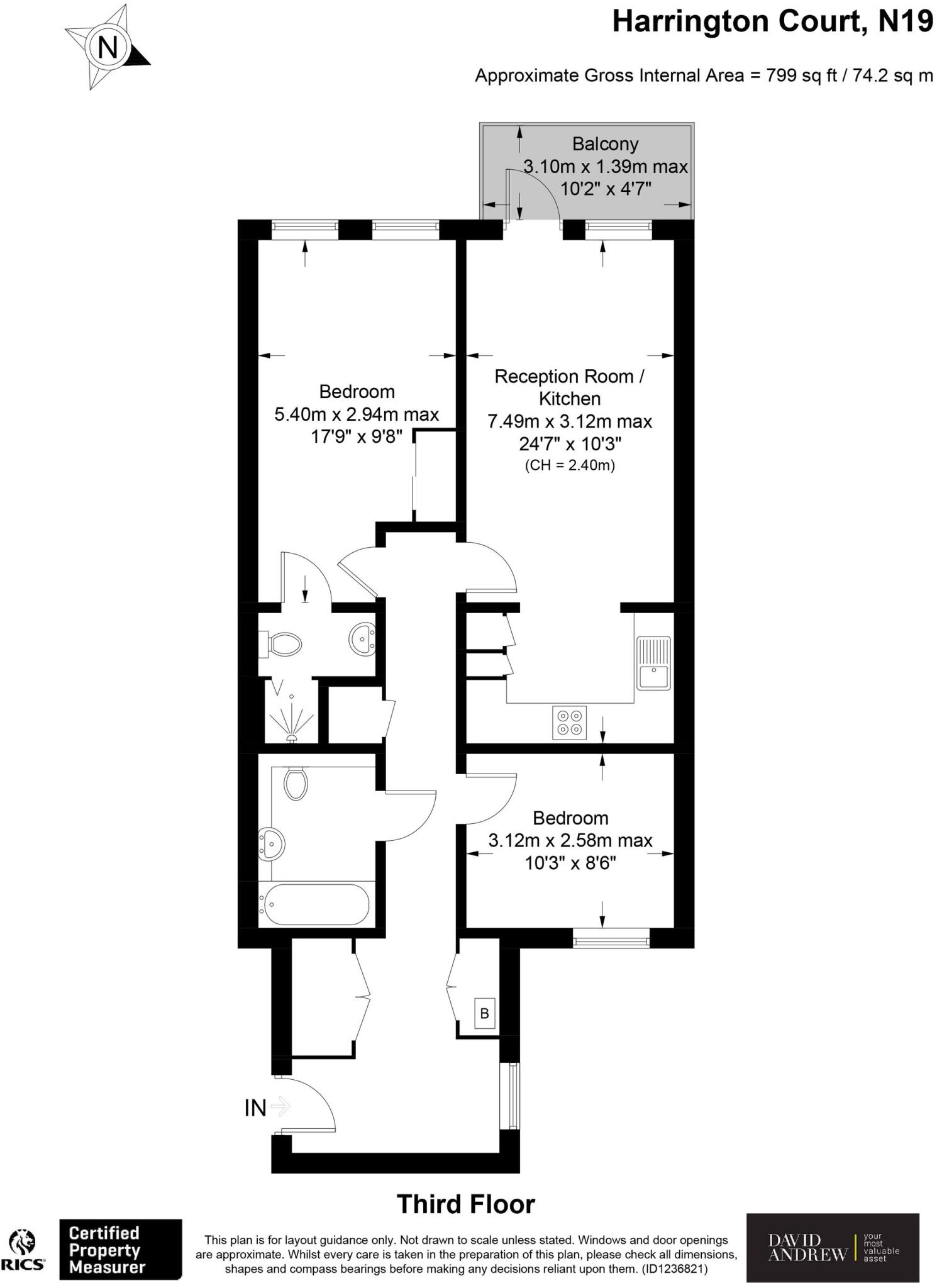 Offered chain-free measuring 799 sq ft / 74.2 sq m, this stylish and practical third-floor 2-bedroom apartment offers well-balanced living space with excellent built-in storage throughout.