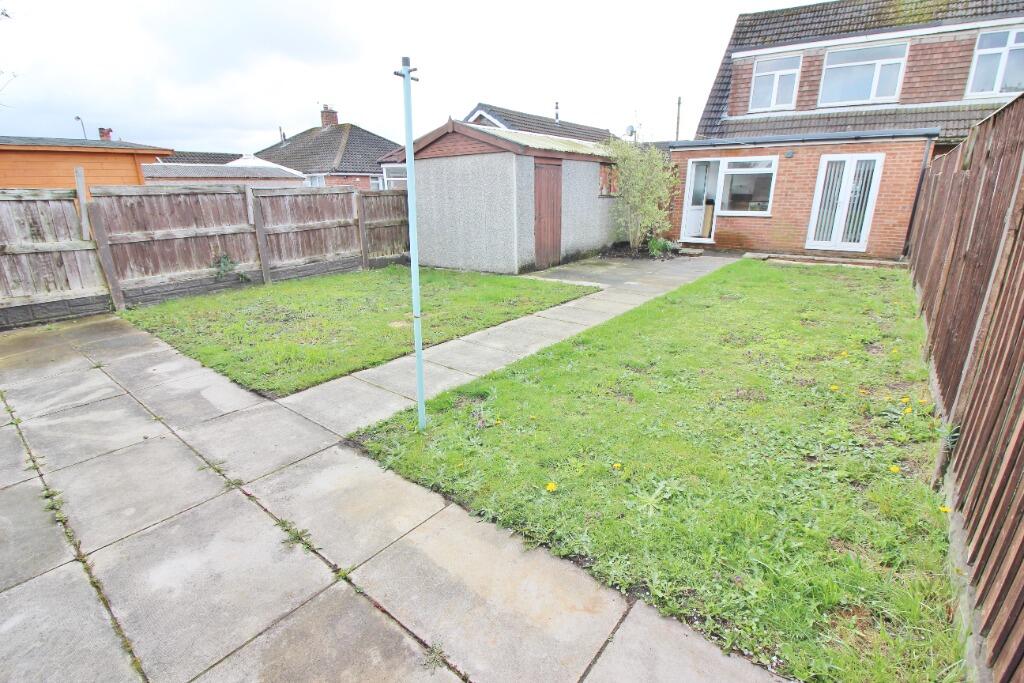 The property includes a garden, as shown in the images. The size is not specified, but it appears to be of a reasonable size for a semi-detached property in this area.