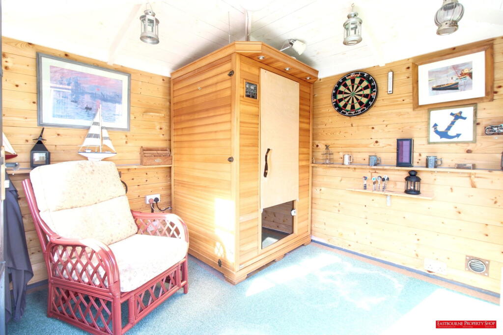 This is a detached bungalow in Eastbourne, offering two bedrooms and one bathroom. The property is in good condition, featuring a modern kitchen and bathroom. A notable feature is the inclusion of a sauna in the garden shed, adding a touch of luxury. The location in the Sovereign area provides convenient access to local amenities, schools, and transportation. While the price is slightly above the local average, the property’s condition and features justify the premium.