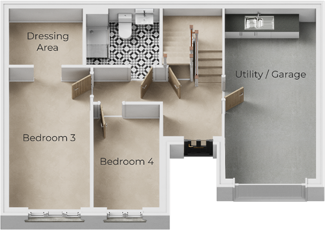 A DESIRABLE and spacious 4-bedroom split level DETACHED house with GARAGE. To the ground floor is two bedrooms, SHOWER ROOM, integral GARAGE with utility area. Upstairs comprises of; OPEN PLAN lounge/kitchen/diner, LUXURY BATHROOM, two further bedrooms inc. MASTER BEDROOM with EN-SUITE shower room.