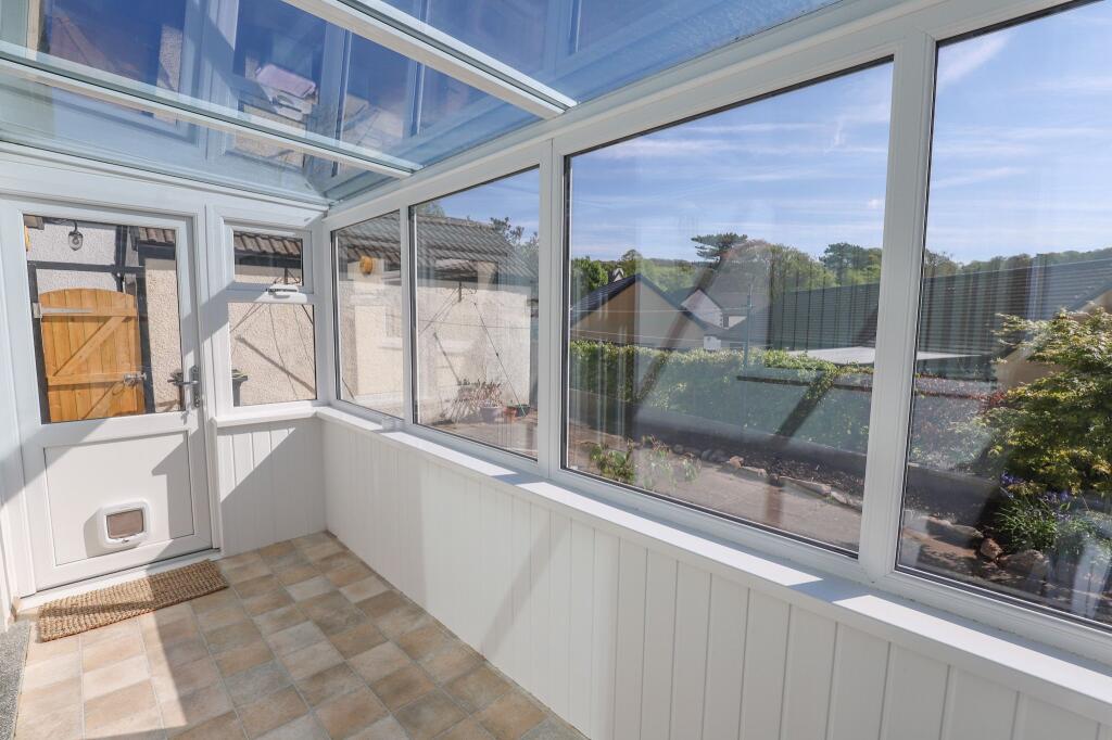 The property appears to be in good condition, well-maintained and presented. The images show a modern kitchen and a recently added conservatory. The interior is clean and bright, suggesting that the property has been well cared for. There is also evidence of a small garden to the rear of the property.