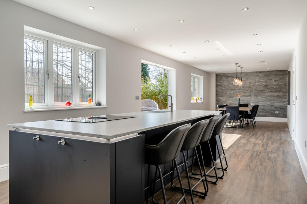 This property is a modern detached house located in Towcester, Northamptonshire. It benefits from a desirable location, with nearby primary and secondary schools including Sponne School which has an outstanding Ofsted rating. The house itself is in excellent condition, having been recently built or extensively renovated. The property boasts a large garden, adding to its appeal. The list price of £1,200,000 is high compared to the average house price in the area (£370,130), but this is justified given the size, condition, and features of the property. The average price per square foot in the area is £424, while this property is listed at a significantly higher price per square foot, reflecting its premium location and modern construction. The property is presented to a very high standard and appears to be finished to a high specification. The large plot size also adds value. There is a large garden with a patio area and a gazebo, ideal for outdoor entertaining.