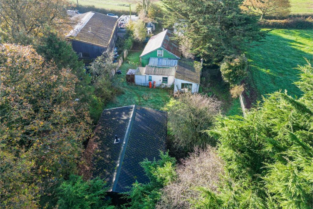 Non standard dwelling on 0.4 acre plot with outbuildings – would suit replacement dwelling (stp) with stunning views and no chain.