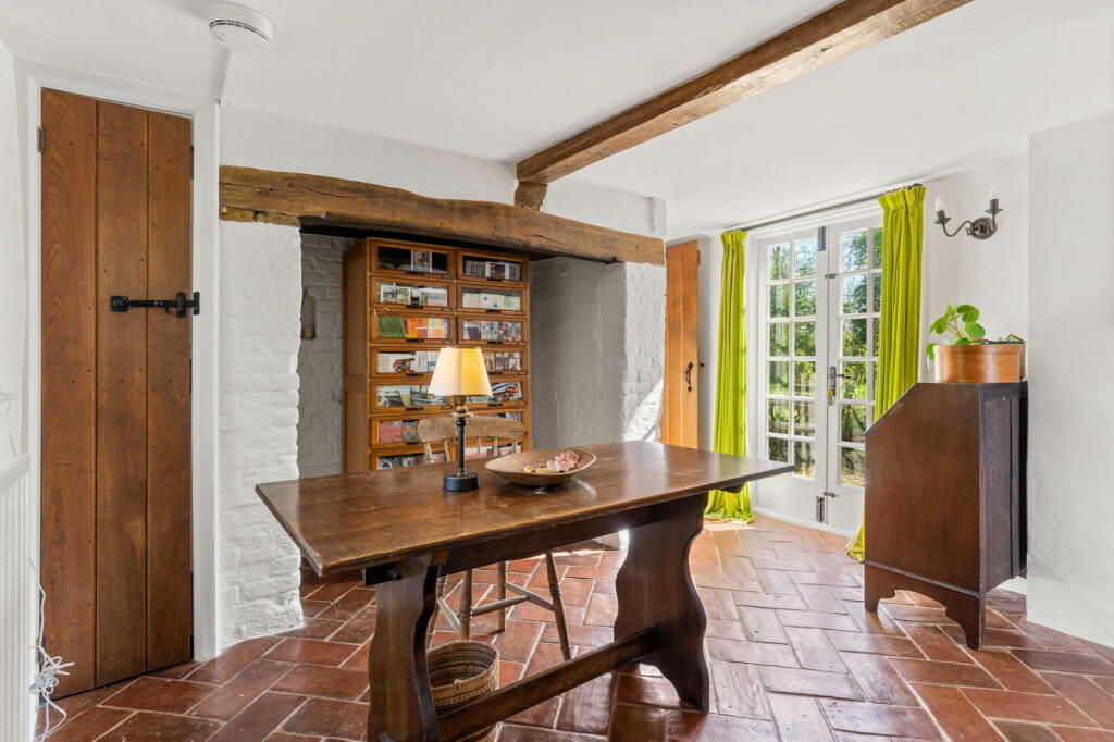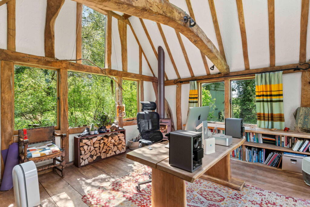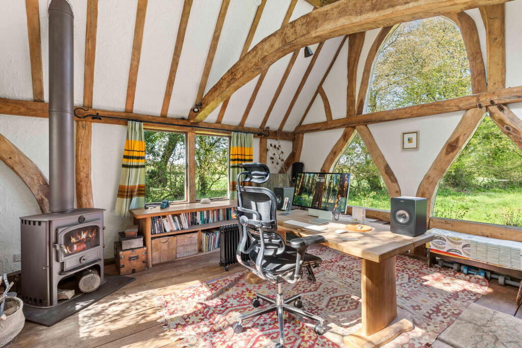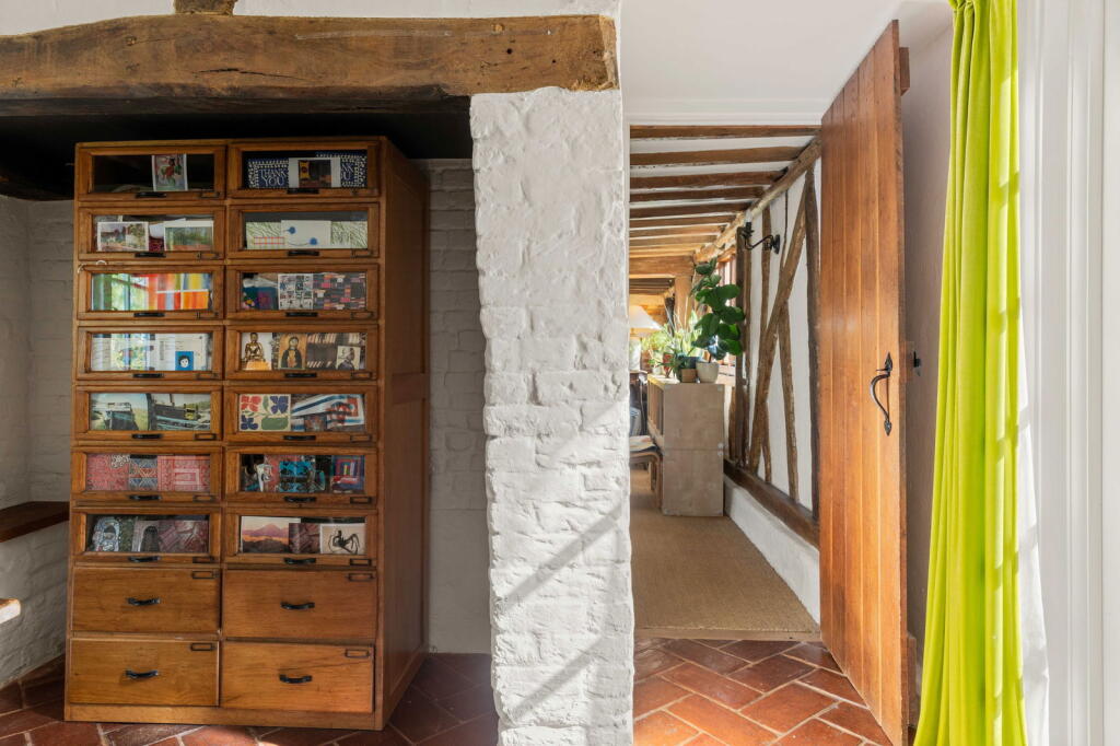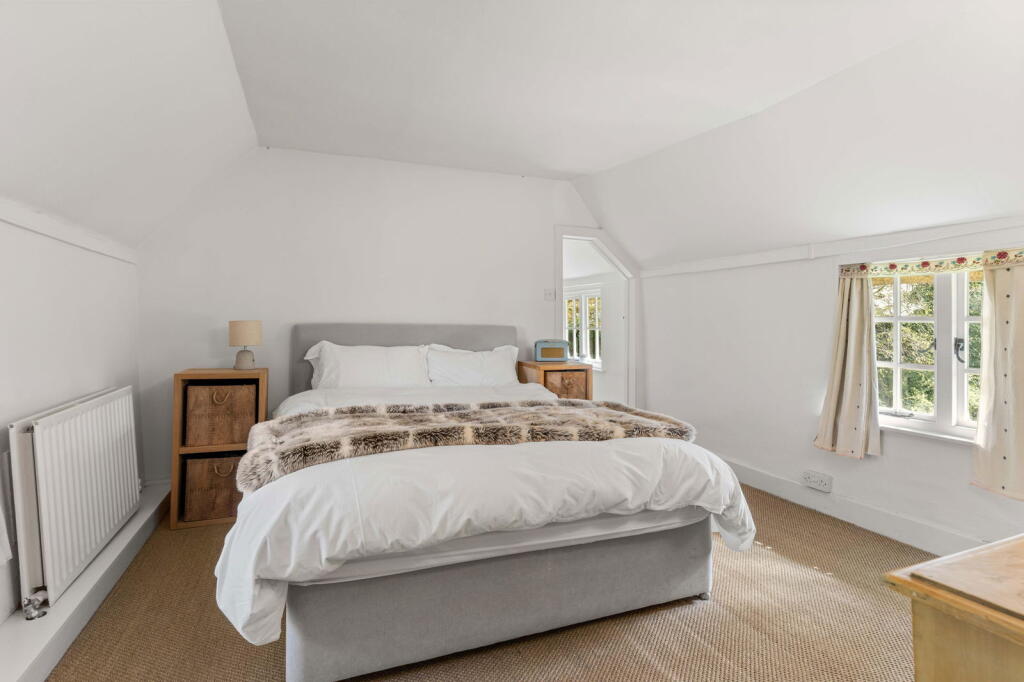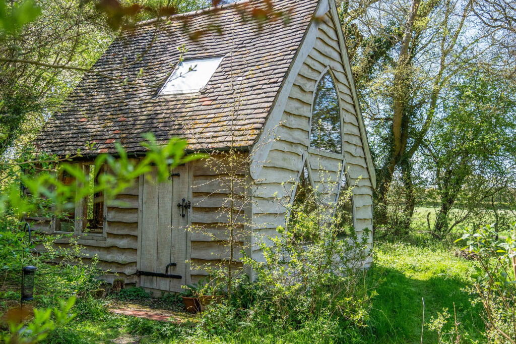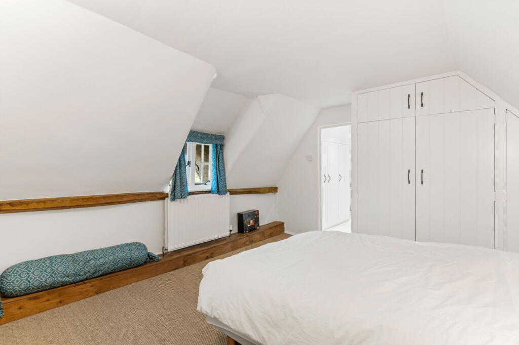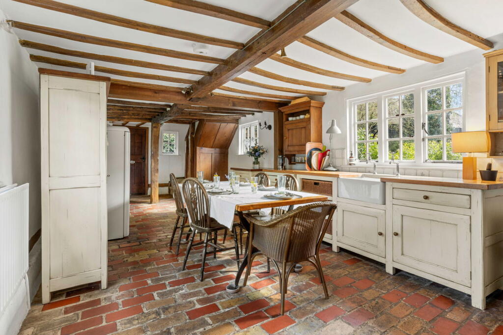 Orchard Cottage is a charming detached property situated in the idyllic village of Ardeley, Hertfordshire. The property benefits from a thatched roof and exposed beams, giving it considerable character. The images reveal a well-maintained home, suggesting it’s in good condition. The kitchen features a traditional Aga range cooker, adding to its period charm. The inclusion of a substantial garden and outbuildings further enhances its appeal.