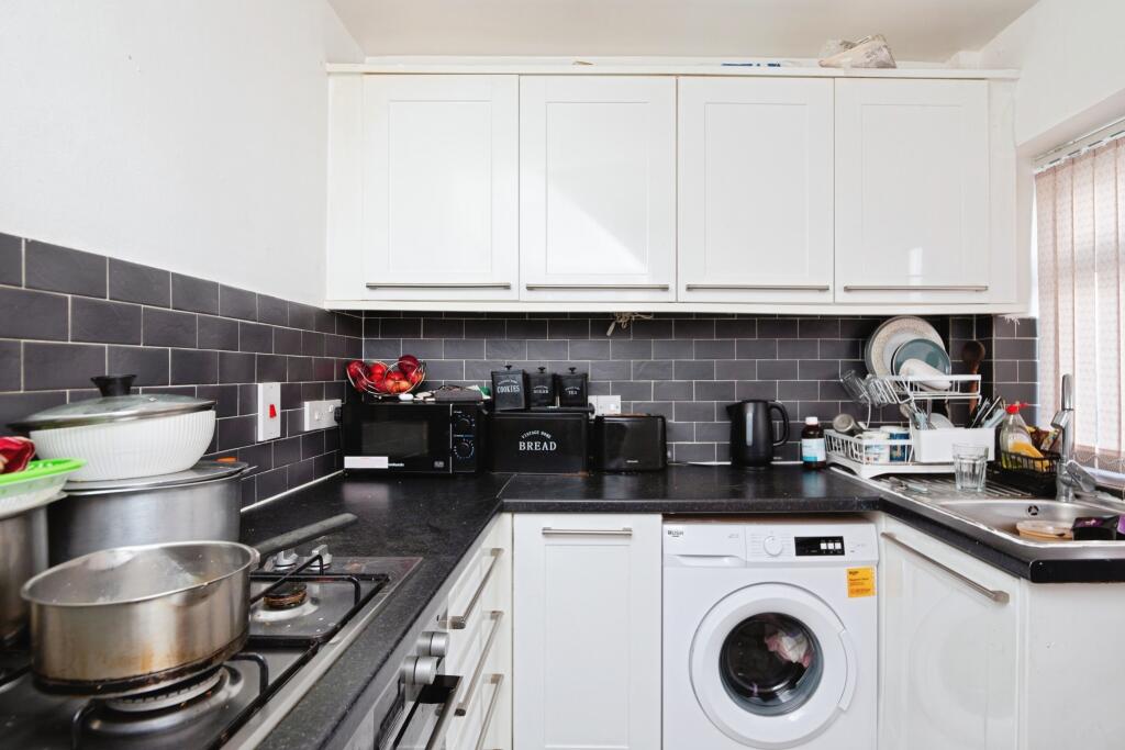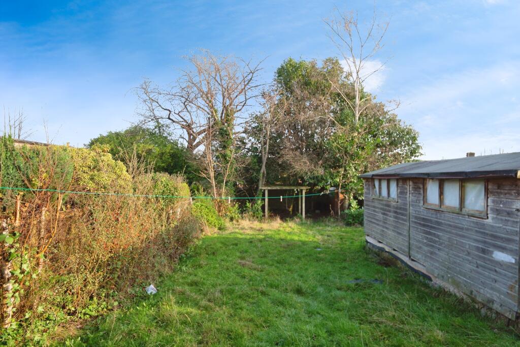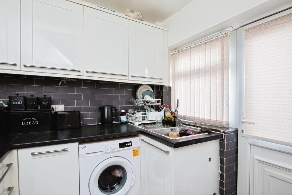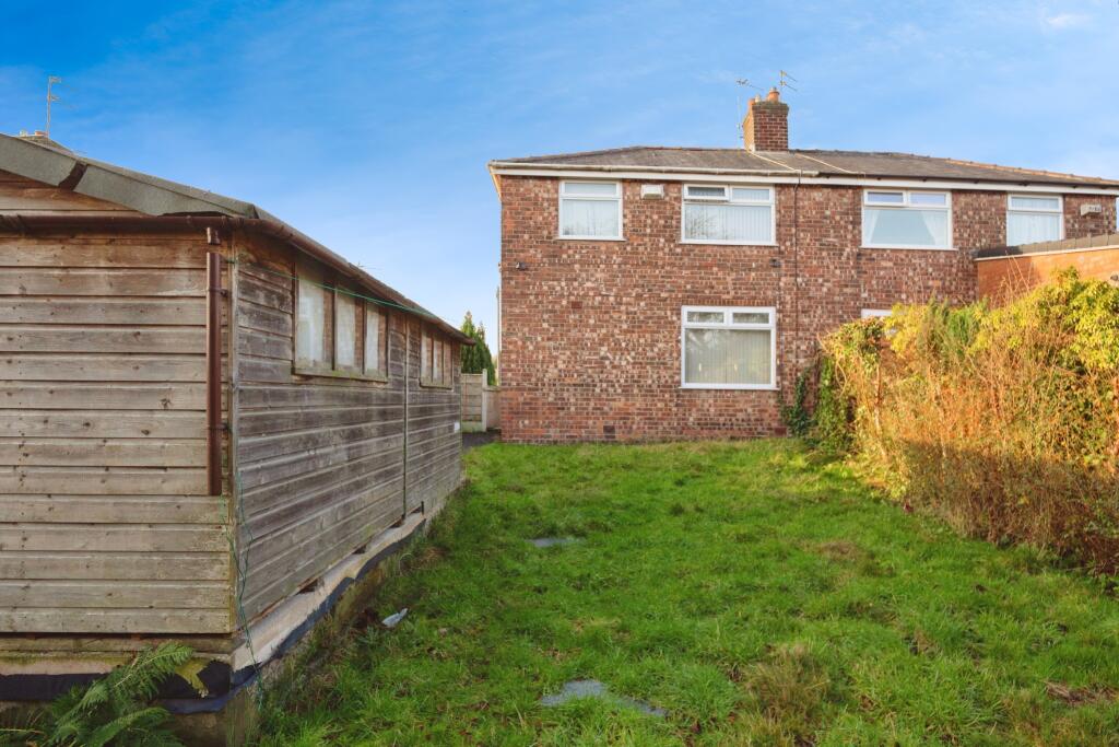 This is a terraced bungalow in Crumpsall, Manchester. The property appears to be in a reasonable condition, although some cosmetic updating may be beneficial. It features a modern kitchen and bathroom. A notable benefit is the good-sized garden with a shed. The location offers good access to local schools and transport links. The asking price seems reasonable for the area, but the lack of square footage data limits a full price assessment.