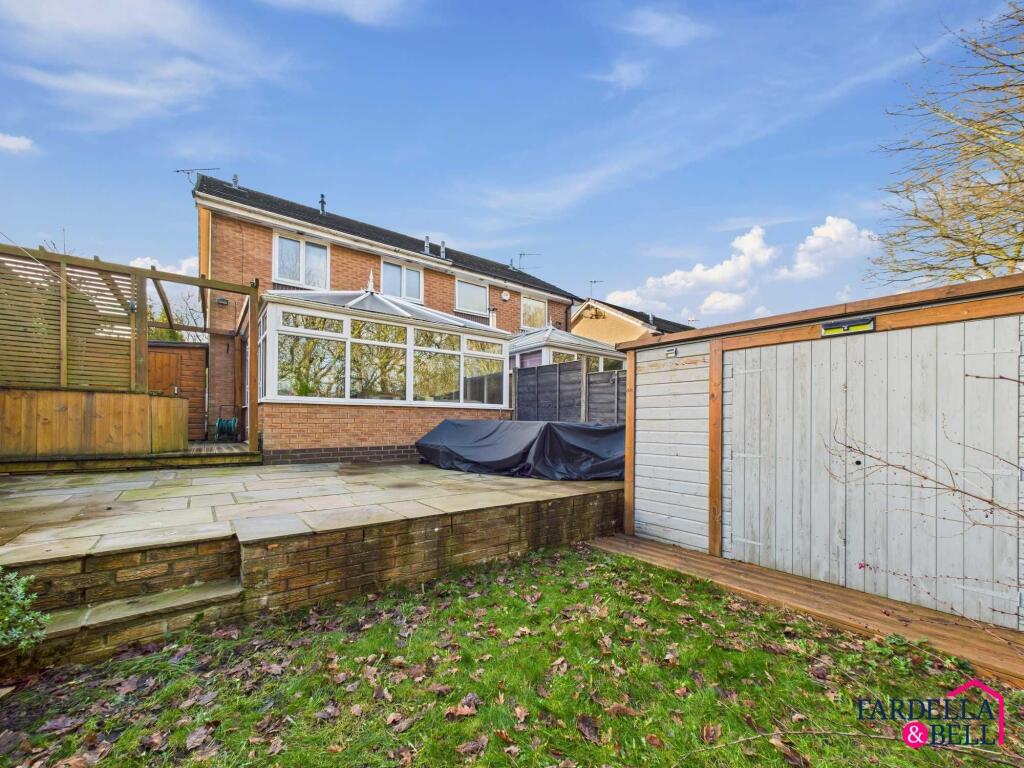 Stylish three-bed semi with modern kitchen, conservatory, en-suite, landscaped garden, off-road parking, and versatile living spaces, ideal for contemporary family living.