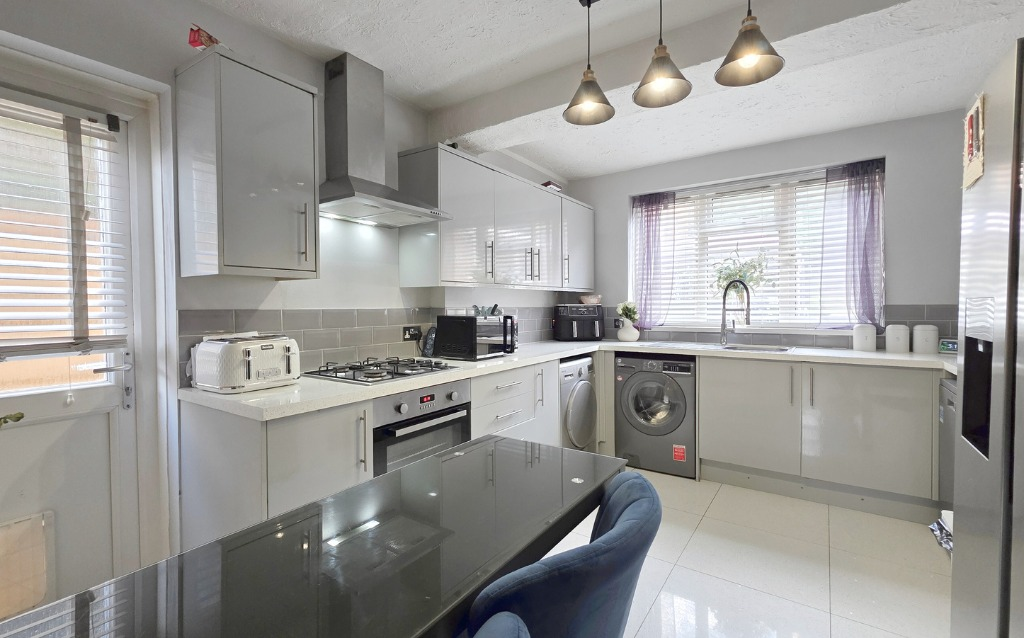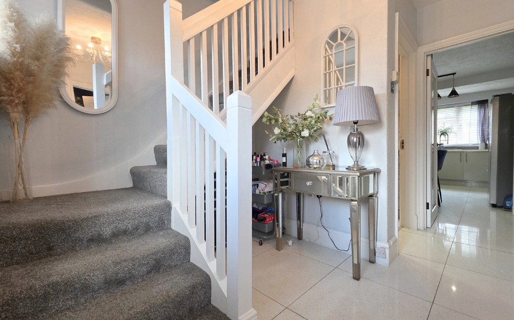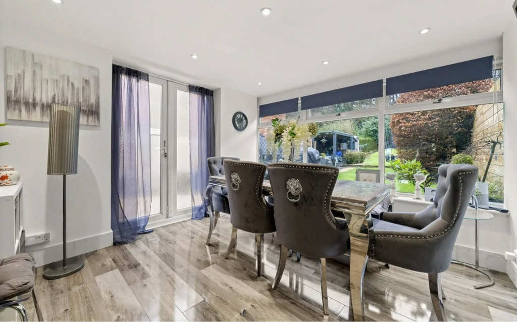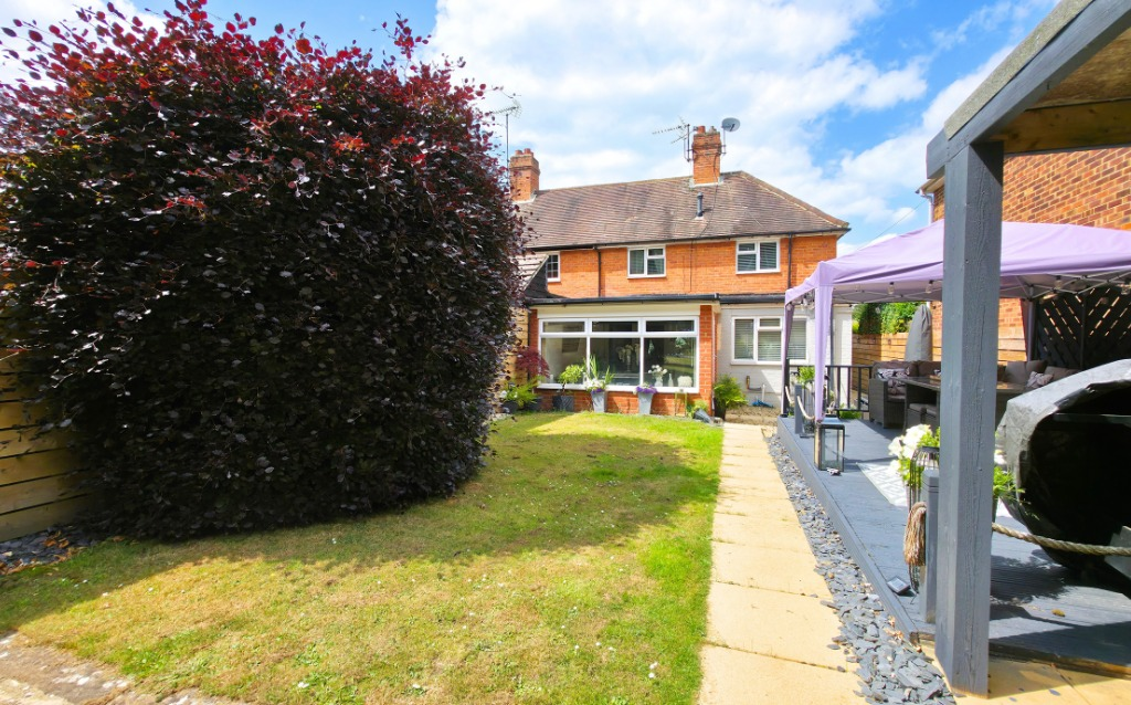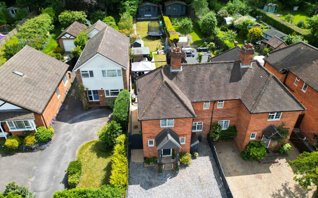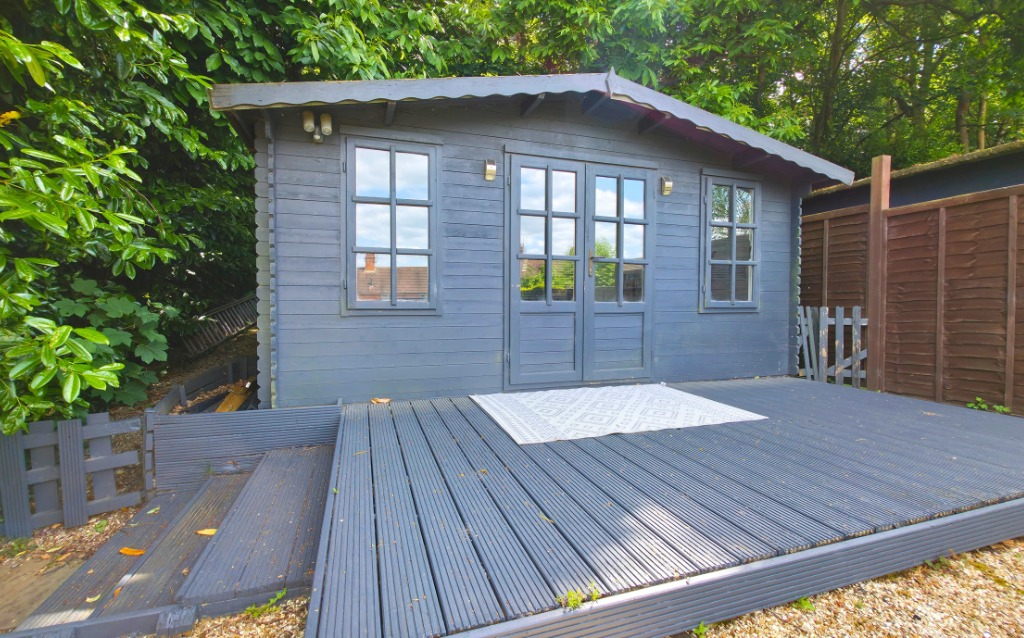 Stylish three-bedroom semi on sought-after Upper Broadmoor Road, just a short walk from Crowthorne High Street. Features include a modern kitchen, extended dining space, south-facing garden backing onto woodland, and a versatile garden cabin.