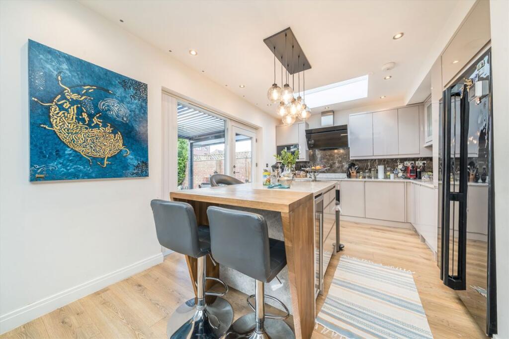 A wonderful, bright and spacious five bedroom, two bathroom, semi-detached family home. The property has been cleverly extended on the ground floor to provide a large L-Shaped living/dining/kitchen area with huge glass doors leading out on to a large family garden.