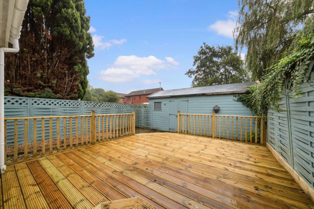 This is a four-bedroom semi-detached property located in Stirling East. It features two bathrooms and has a square footage of 819 sqft. The property includes a garden with decking and a shed. Stirling train station is 2.41 KM away. The property appears to be in good condition, with modern bathrooms and a well-maintained kitchen. The listing price of £230,000 seems reasonable compared to the average area price of £534,995.