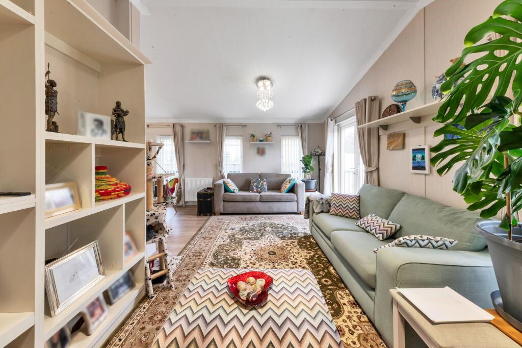 Ensum Brown offer for sale this detached Park Home in a gated community in Fowlmere, with countryside views, a wrap-around veranda, open-plan living, 2 bedrooms and 2 bathrooms.