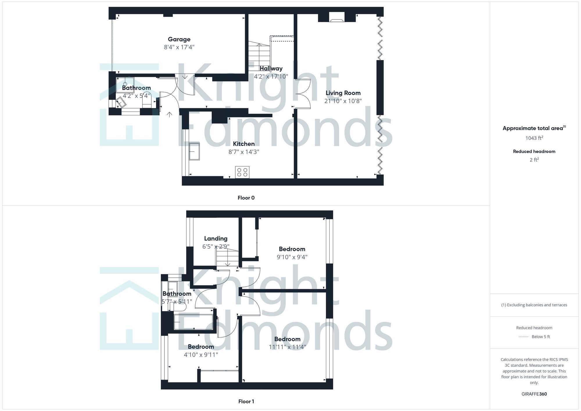 This semi-detached property is located on Stirling Close in Rainham South, Gillingham. The property features three bedrooms and two bathrooms, with 1,043 square feet of living space. The home is listed with Knight Edmonds.