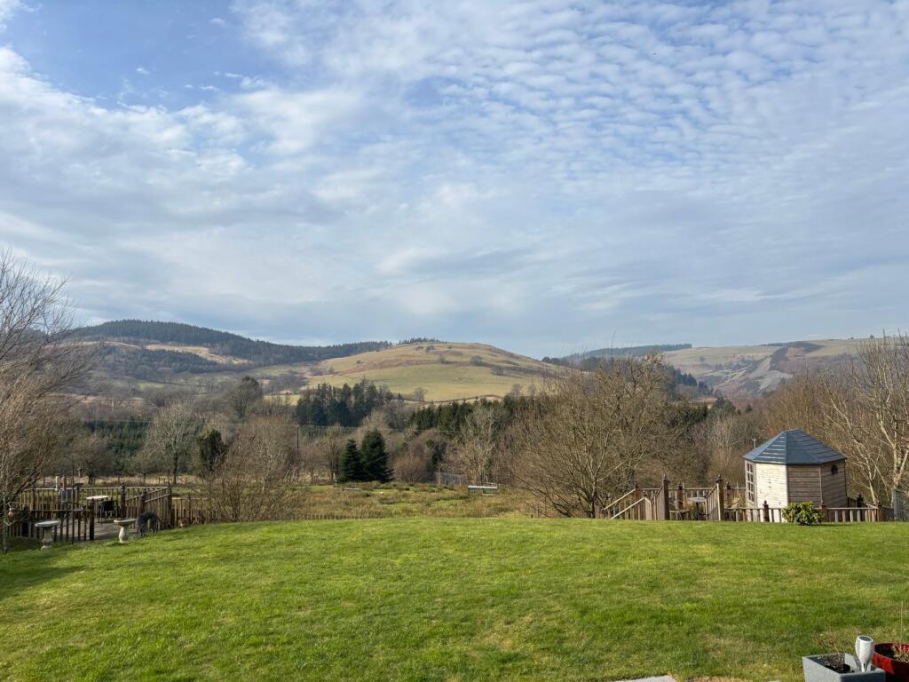 Breath taking country views. A substantial highly desirable 4 bedroomed dormer style bungalow set in spacious grounds and enjoying breath taking views over the Ystwyth Valley. Ystrad Meurig, near Devil's Bridge, West Wales