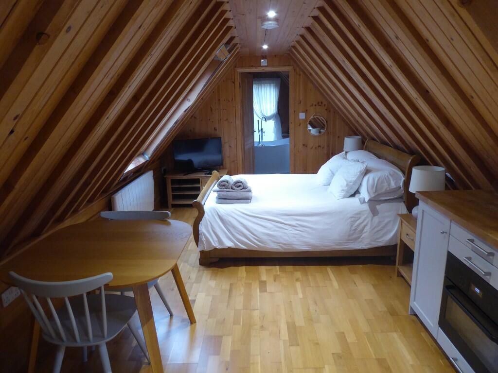 Fully furnished first floor upper studio annex close to Sampford Arundel. Rural setting. Electric heating. Open garage porch. Sorry no pets. EPC rating D