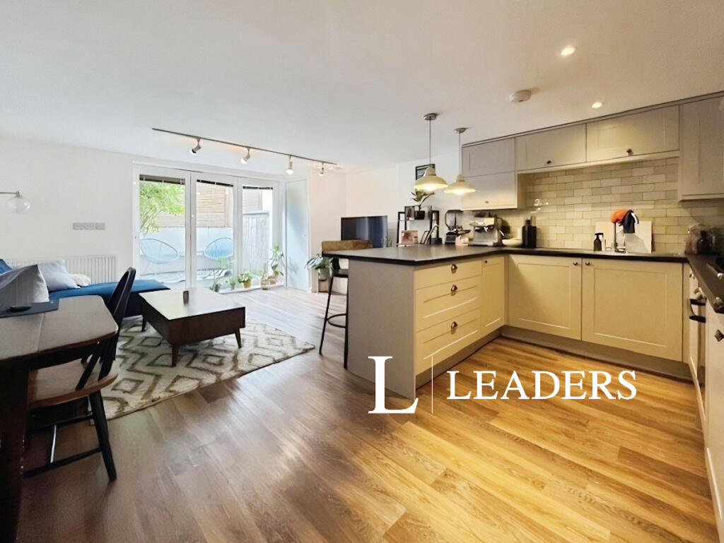 Leaders are delighted to offer for rental this superbly presented garden flat with south facing decked patio garden and own street entrance. Contemporary fixtures and fittings, wood floors, bi-fold doors, fully integrated open plan kitchen with appliances and good storage. Perfectly located for H...