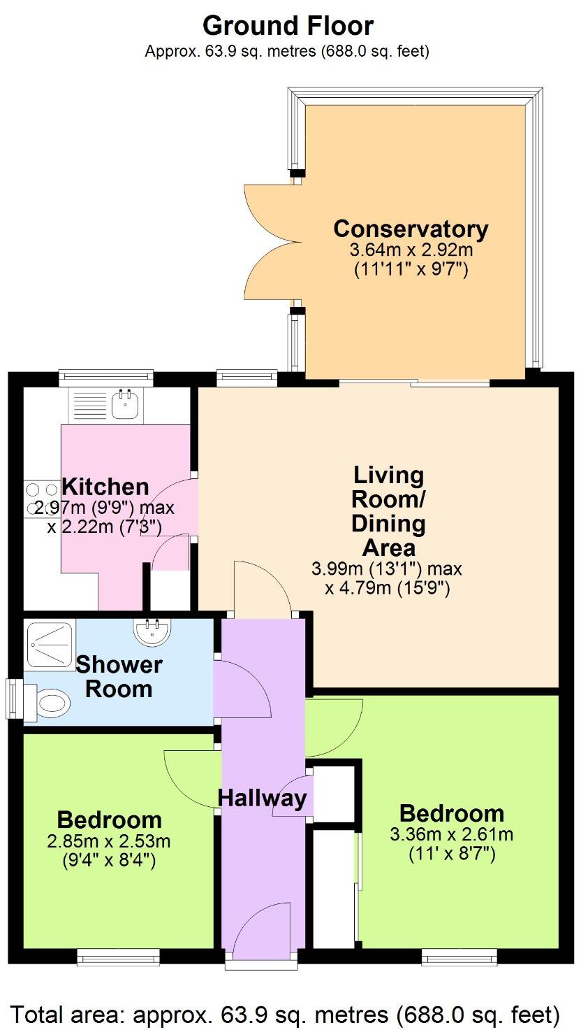 Within a short distance of the town centre this two bedroom bungalow offers practical and low maintenance living.