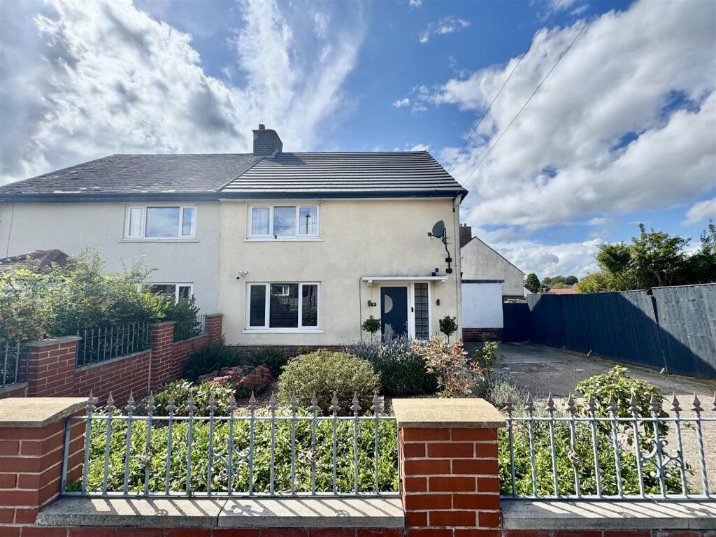 A semi-detached property located on St. Johns Road, Kirkheaton, Huddersfield. The property has 3 bedrooms and 2 bathrooms. The interior of the property appears to be in good condition, with a modern kitchen and bathrooms. The house benefits from a utility room. The property has both a front and back garden. The rear garden features a patio area.