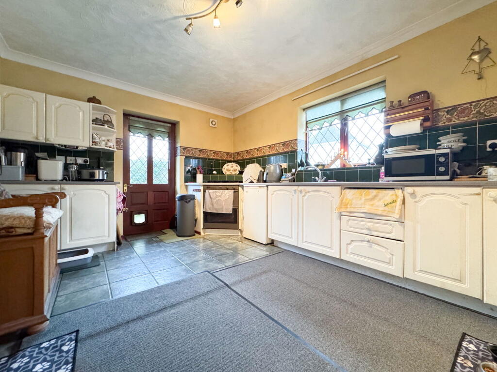 This is a 4-bedroom detached bungalow in Kingsteignton, Newton Abbot. The property is in a fair location, close to schools and transportation. The property is in need of some modernisation, but it has a good amount of space and a garden. The price is reasonable for the size and location of the property.
