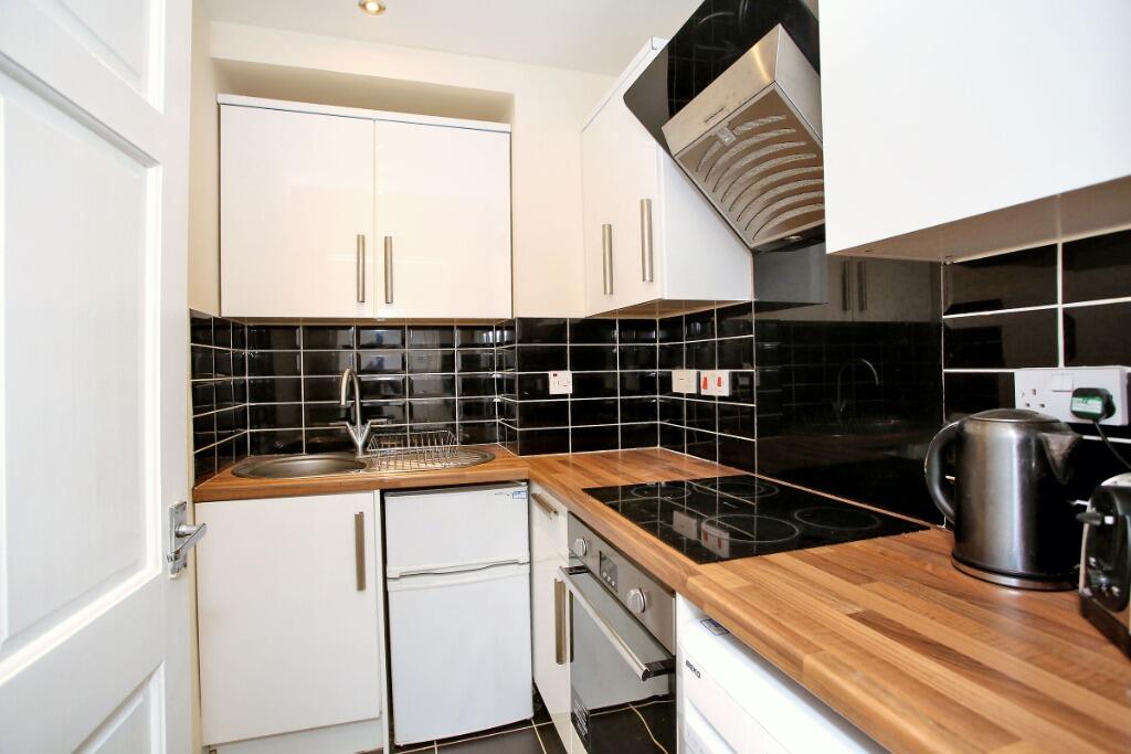 One bed fully furnished ground floor flat in good condition in the popular George Street area of Aberdeen in a traditional granite tenement. Gas Central Heating. There is a good-sized lounge with laminate wood effect flooring. Coffee table, sofa and artwork. Corner lamp, foldaway table and stora...