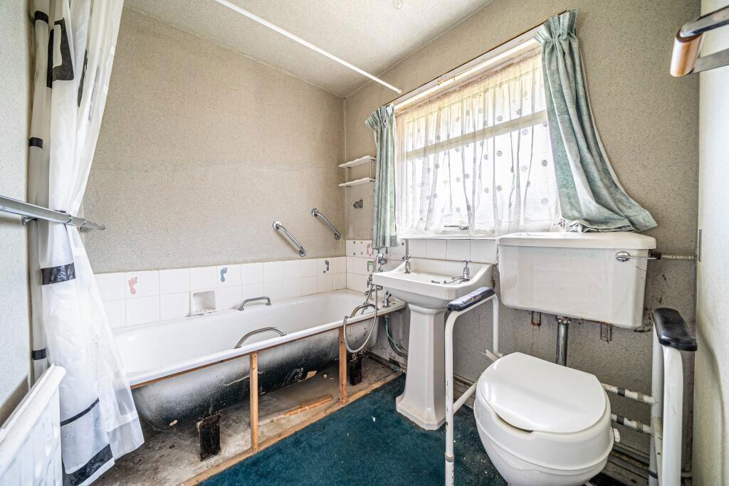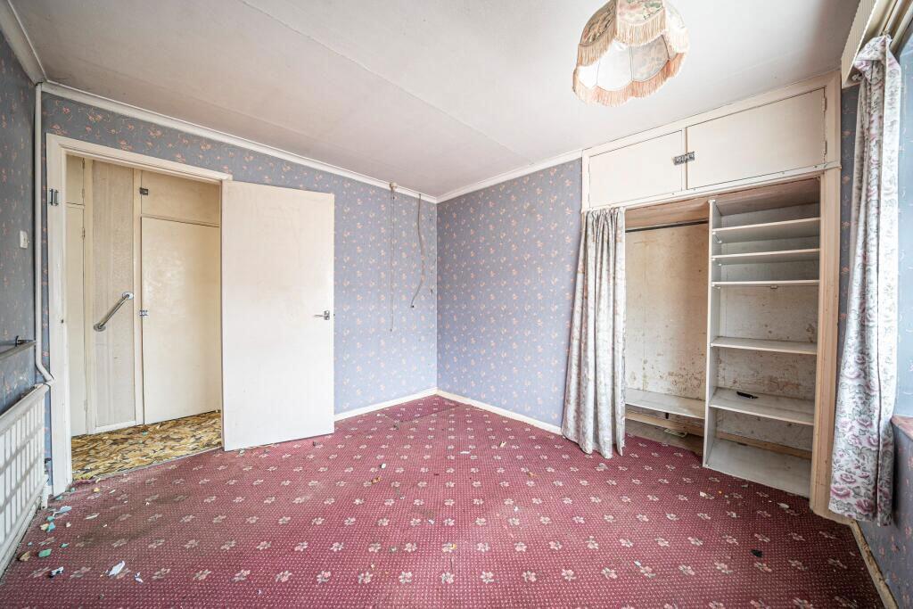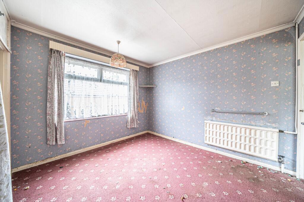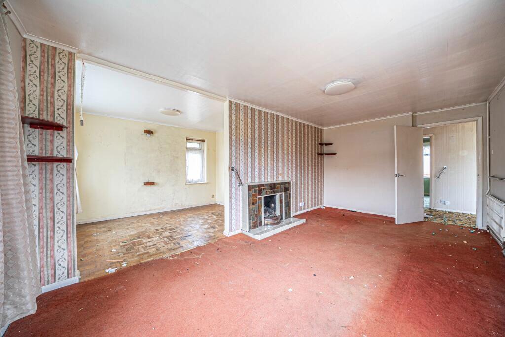 Standing on a large corner plot in an established residential road, this detached bungalow is offered for sale with no onward chain. The accommodation offers scope for improvement and currently comprises entrance hall with storage and leading to a double aspect living room with a feature fireplac...