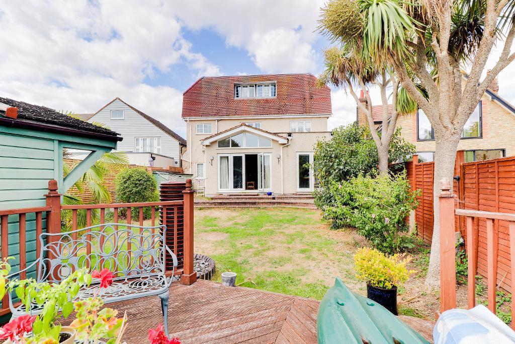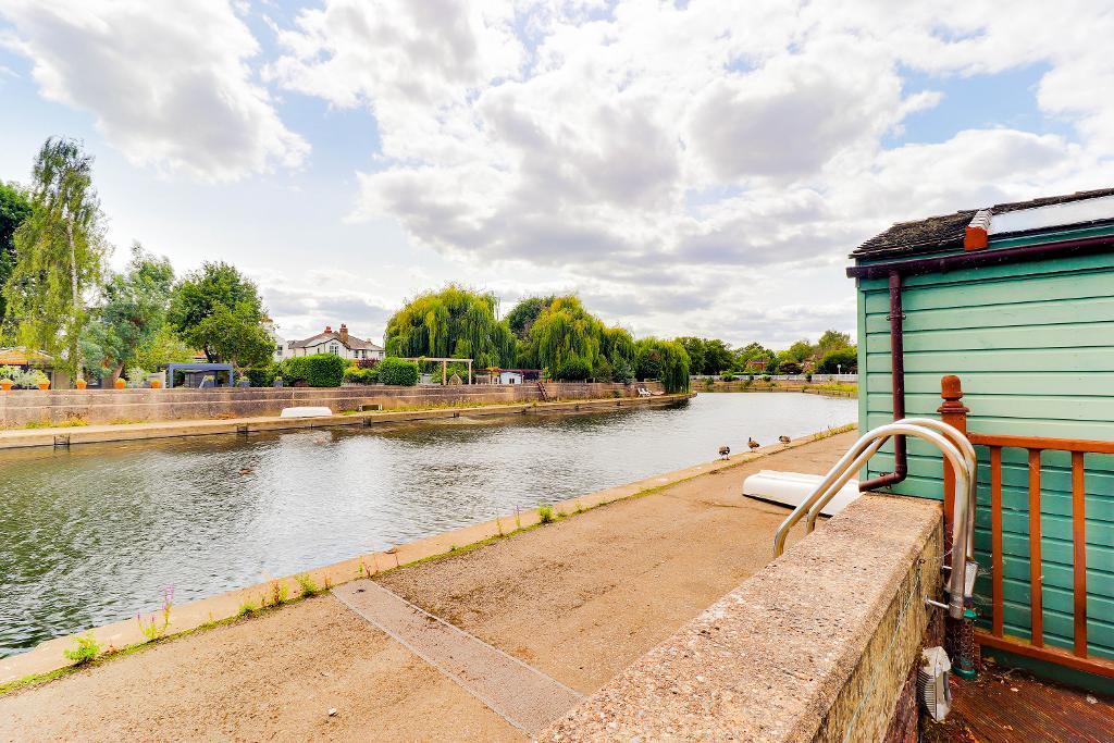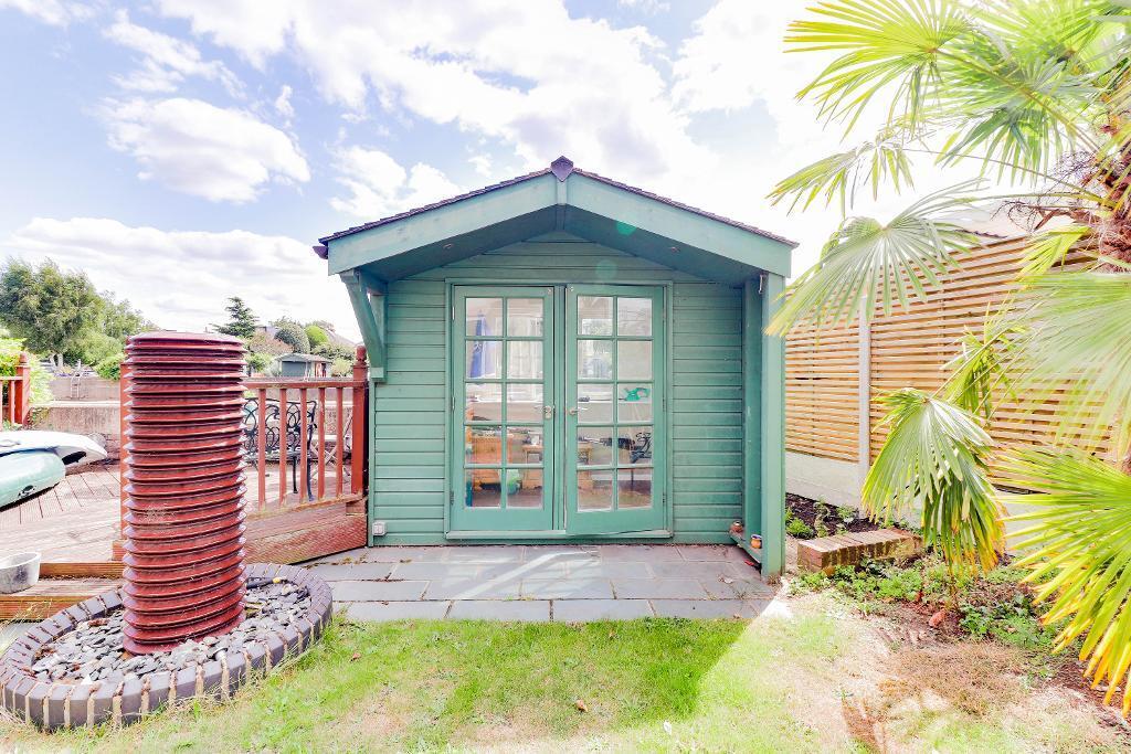 A detached property in East Molesey, Surrey. Close to transport links and schools. The property has a garden and shed. The price is slightly above average for the area.