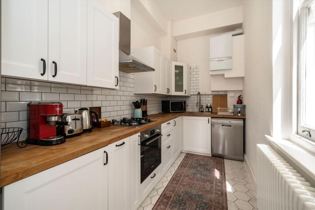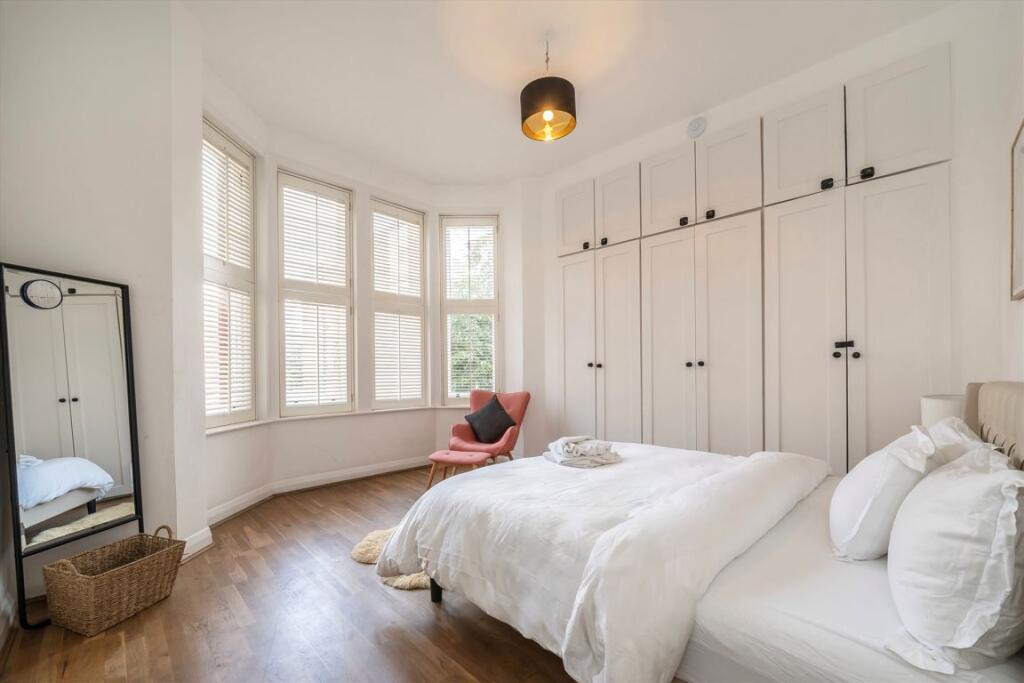 A larger than average and immaculately presented three double bedroom apartment situated within a grand period building. This raised ground floor apartment has a bright and large bay fronted reception room, modern kitchen, smart family bathroom and three bedrooms. The bay fronted principle bedroo...