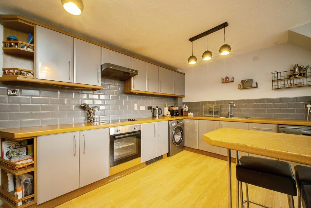 This is a three-bedroom penthouse apartment located on Queens Road in Farnborough. The property benefits from a modern kitchen and bathrooms and appears to be in generally good condition. It also has access to a shared garden. The property is located close to local schools, including two primary schools rated as ‘Outstanding’ by Ofsted. Transportation links are also convenient, with North Camp train station within 1.5km. The asking price of £350,000 seems reasonable given the location, condition, and size of the property.