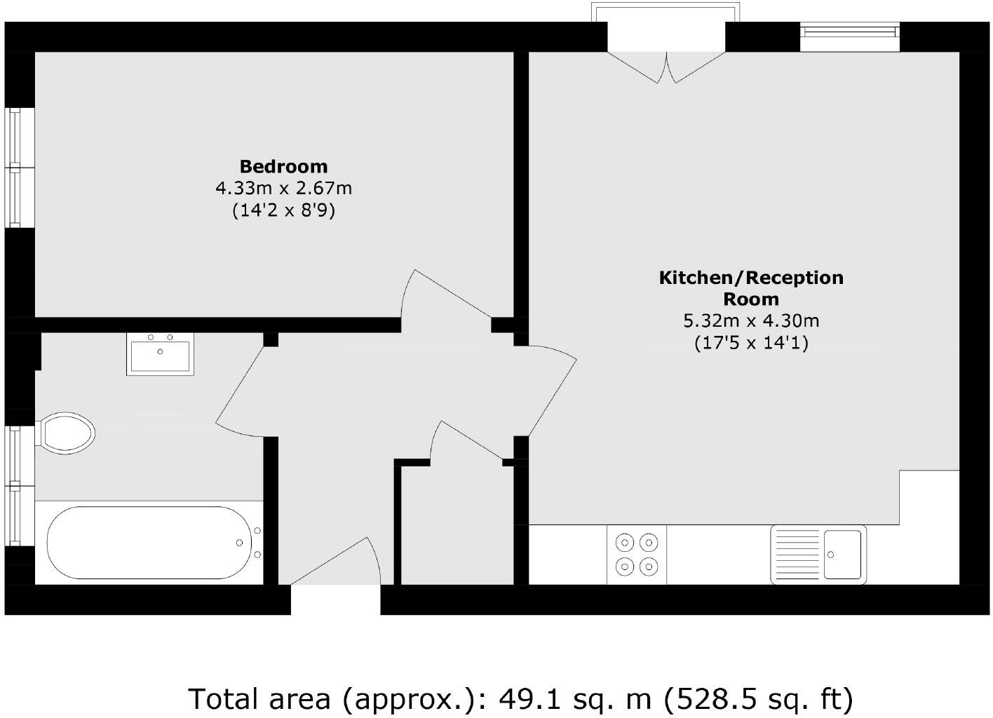 A one bedroom apartment on the first floor of this new build development. There is an open plan kitchen with modern appliances, large reception and bright interior.