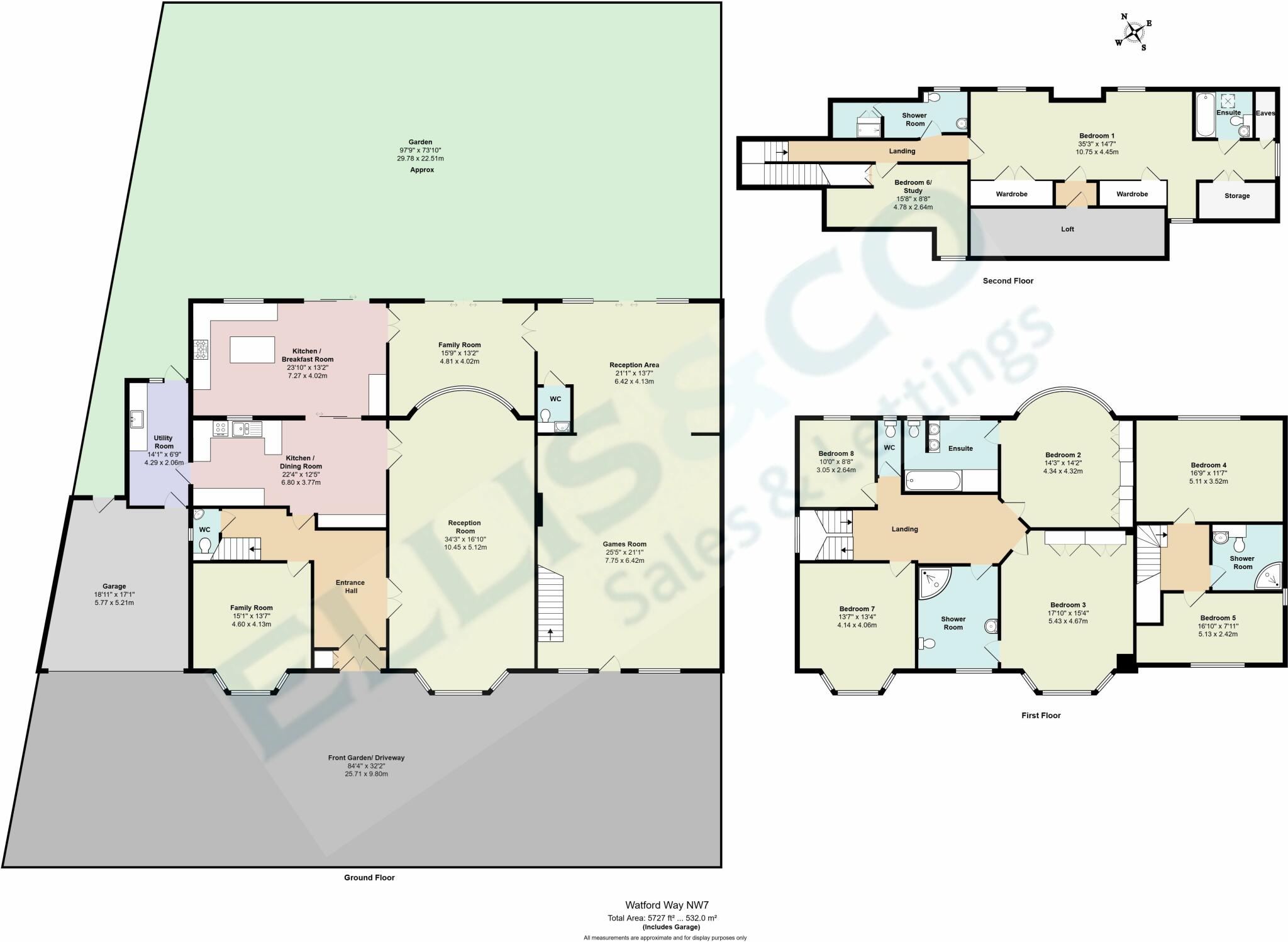 A spacious eight bedroom, five bathroom (two en-suite) double fronted detached family residence sitting on a wide plot behind a carriage driveway, conveniently located close to Mill Hill Broadway's excellent shopping facilities and Thameslink Station.
