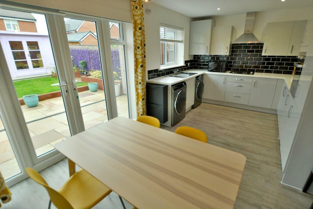 A well proportioned three bedroom, two bathroom semi detached house with kitchen/diner and landscaped garden in a cul-de-sac location overlooking the Corfe Mullen recreation ground with block paved parking for two cars