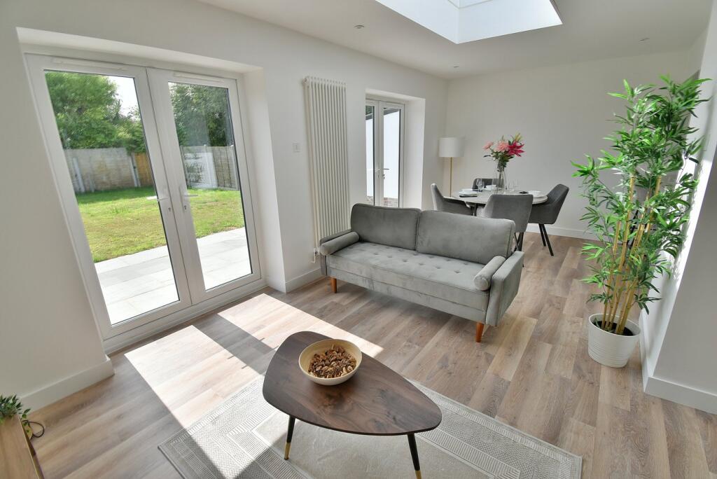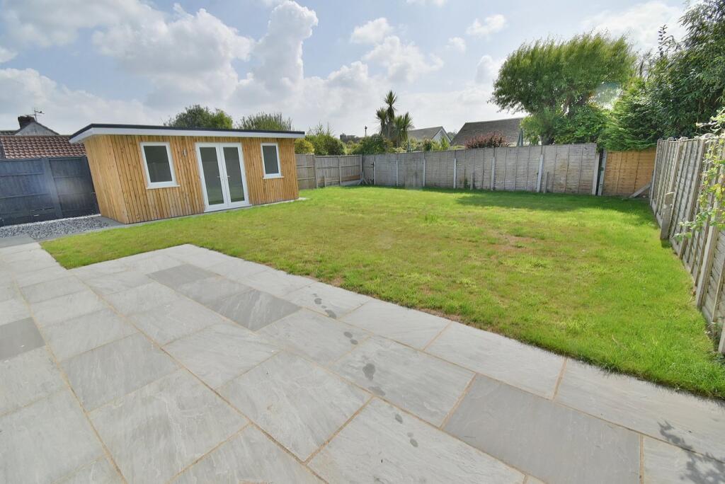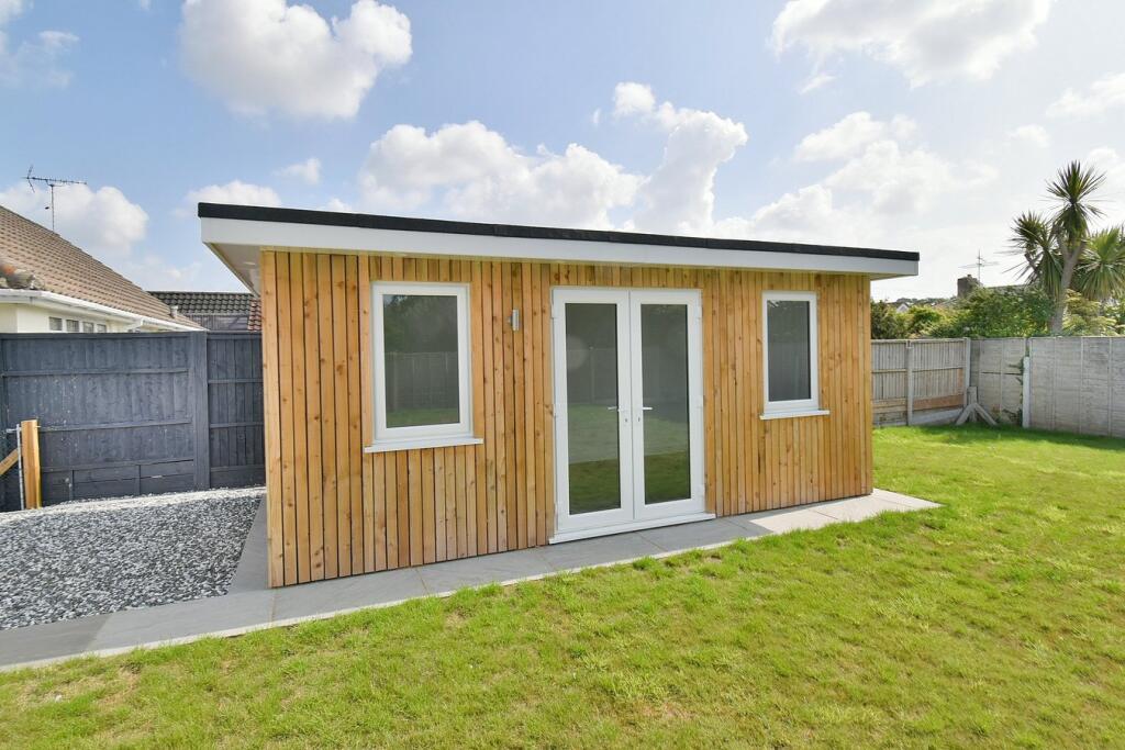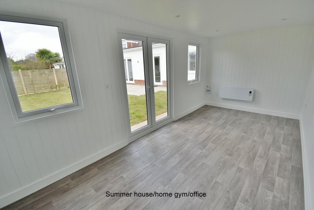 This recently modernised and substantially enlarged THREE DOUBLE BEDROOM, ONE BATHROOM, ONE SHOWER ROOM, DETACHED BUNGLAOW has a SECLUDED REAR GARDEN with detached OUTBUILDING/HOME OFFICE/GYM and driveway providing GENEROUS OFF ROAD PARKING