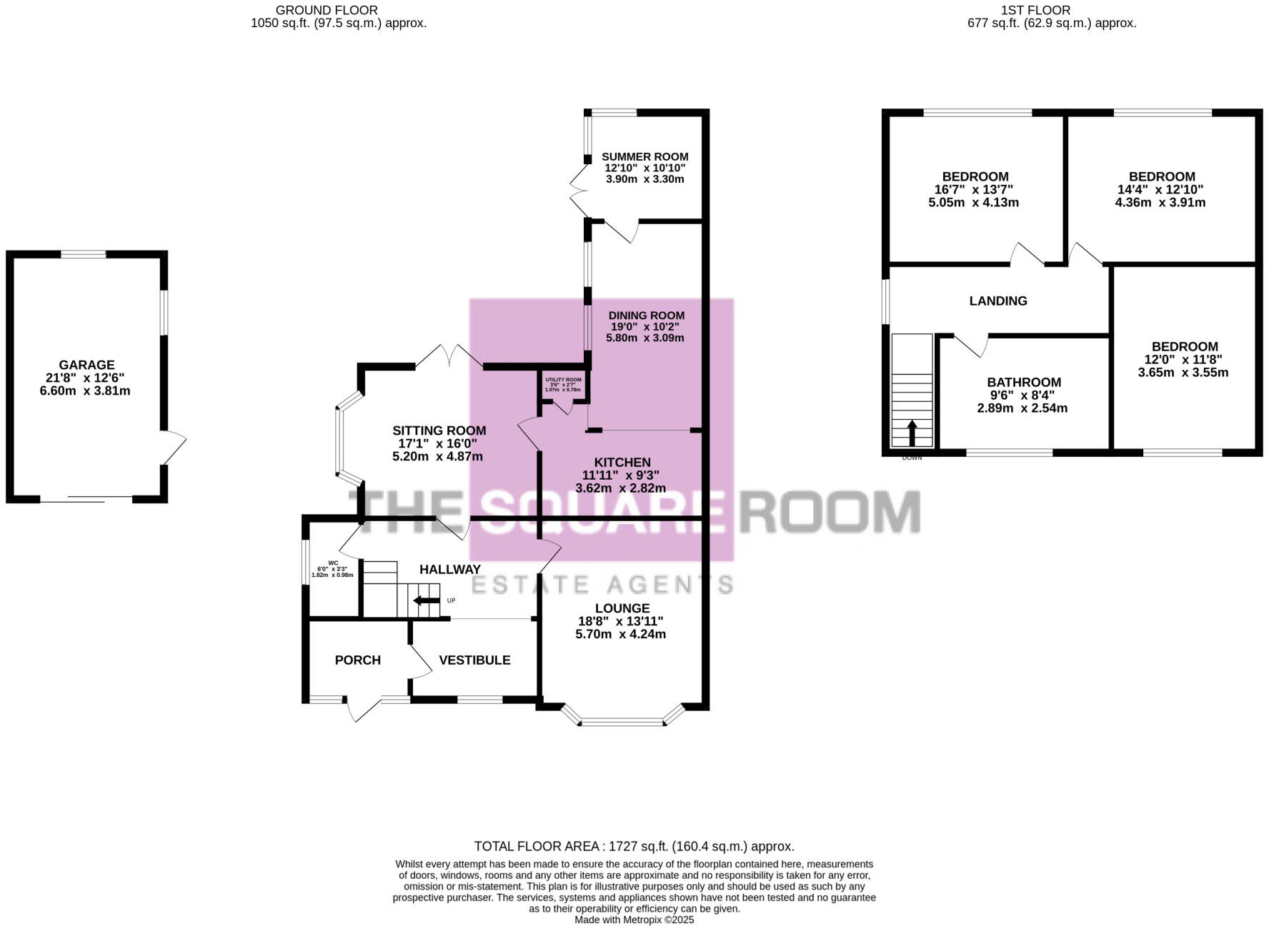 Land: The property includes a substantial garden area, as evidenced by the exterior photographs. The plot size is listed at 1,727 sqft, providing ample outdoor space. This is a positive attribute for the property.