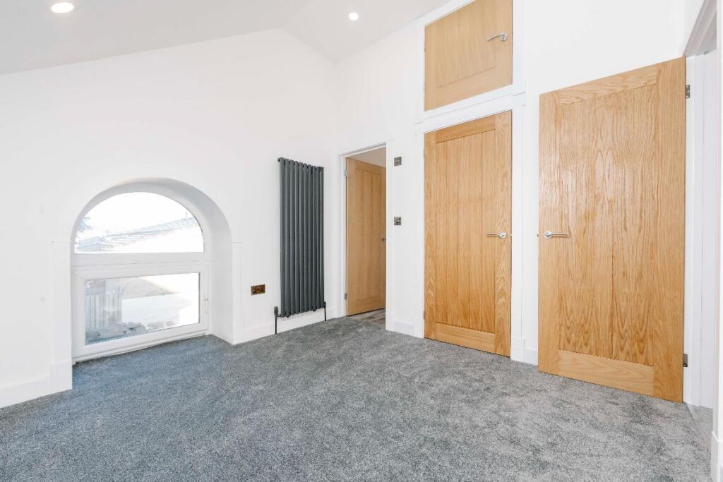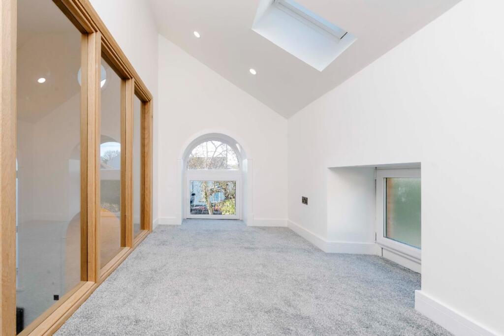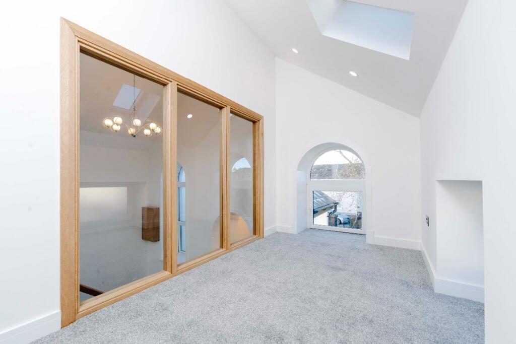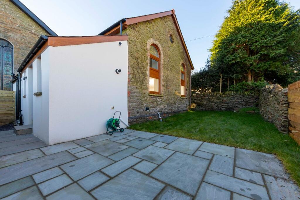 This property, Penuel Chapel Vestry on High Street in Nelson, Treharris, presents as a beautifully renovated four-bedroom home with two bathrooms. The conversion from what appears to be a former chapel is striking, resulting in a unique and spacious property. The images showcase modern, contemporary interiors with high-quality fixtures and finishes. The open-plan living space is particularly impressive, offering a bright and airy feel. The property benefits from a good level of natural light throughout. The kitchen is modern and well-equipped, while the bathrooms are stylish and contemporary. The bedrooms are of a good size and are well-presented. The small garden provides some outdoor space. The location on the High Street offers convenience, with local amenities likely within walking distance. The proximity to schools is a major advantage for families. While the village of Nelson is relatively small, its access to the A470 and the Taff Trail, as well as several train stations, adds to its appeal. The lack of detailed information on the plot size and comparable properties with square footage data makes a comprehensive market valuation challenging. However, based on the available information, the asking price appears to be competitive within the local market.