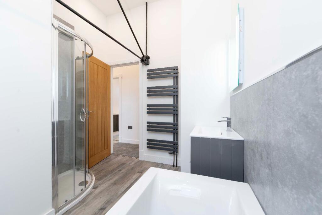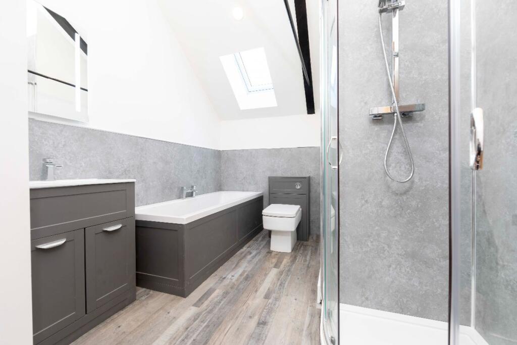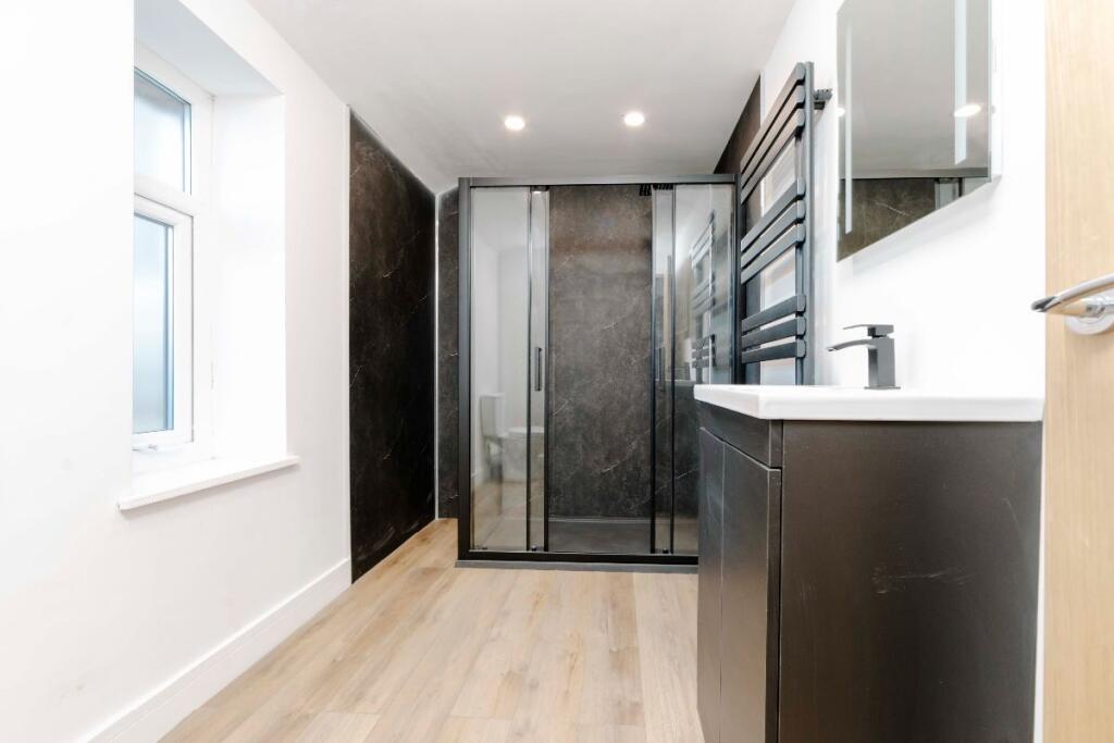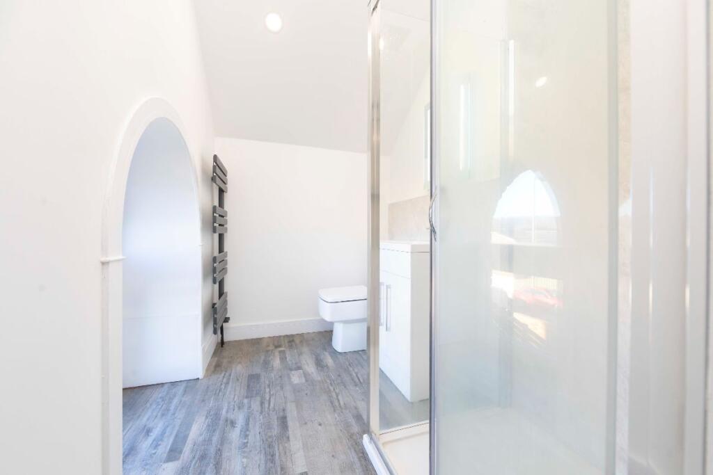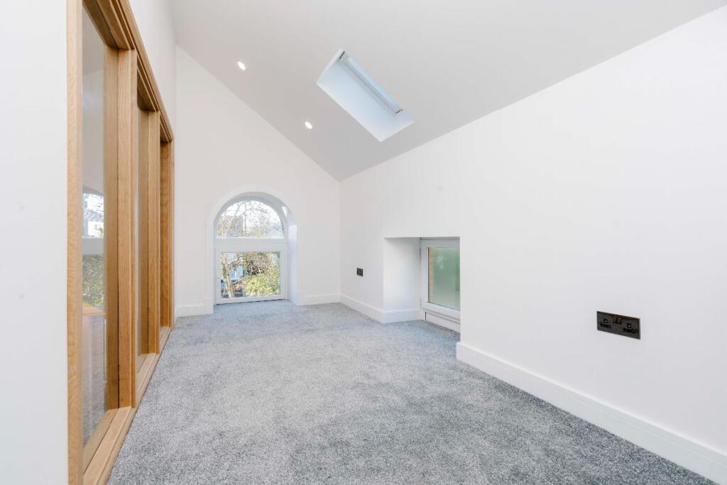 This property, Penuel Chapel Vestry on High Street in Nelson, Treharris, presents as a beautifully renovated four-bedroom home with two bathrooms. The conversion from what appears to be a former chapel is striking, resulting in a unique and spacious property. The images showcase modern, contemporary interiors with high-quality fixtures and finishes. The open-plan living space is particularly impressive, offering a bright and airy feel. The property benefits from a good level of natural light throughout. The kitchen is modern and well-equipped, while the bathrooms are stylish and contemporary. The bedrooms are of a good size and are well-presented. The small garden provides some outdoor space. The location on the High Street offers convenience, with local amenities likely within walking distance. The proximity to schools is a major advantage for families. While the village of Nelson is relatively small, its access to the A470 and the Taff Trail, as well as several train stations, adds to its appeal. The lack of detailed information on the plot size and comparable properties with square footage data makes a comprehensive market valuation challenging. However, based on the available information, the asking price appears to be competitive within the local market.