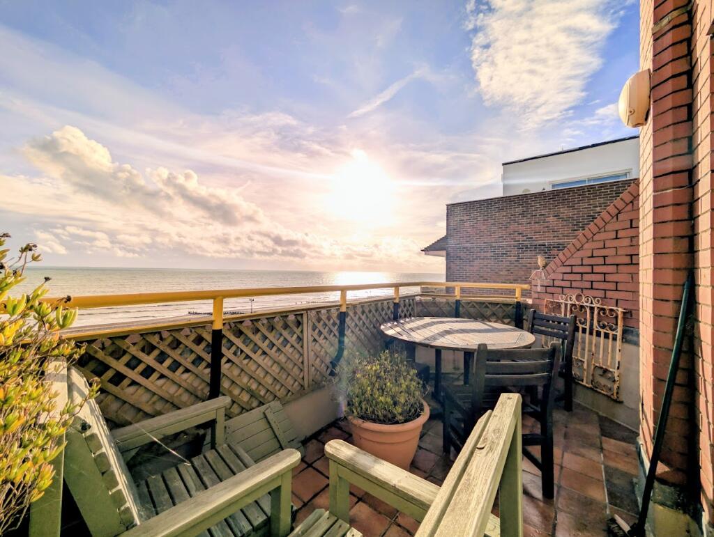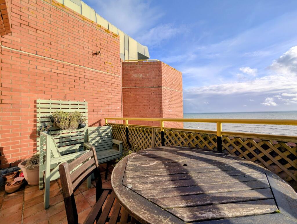A beautifully presented two double bedroom apartment in a popular seafront development benefitting from two bathrooms, a south/west facing balcony with direct sea views, a share of the freehold, long lease, visitor parking and a garage.