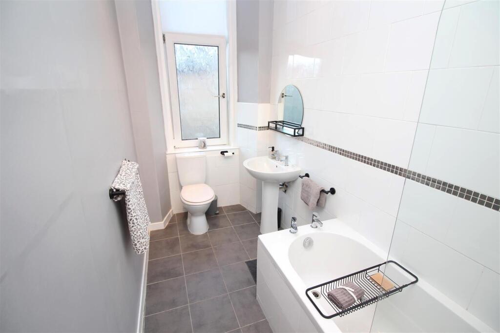 This is a two-bedroom flat in Greenock, Inverclyde. The property is in good condition, with modern interiors and a shared garden. It is located close to transportation links and local amenities. The price appears reasonable compared to other properties in the area. The property retains some traditional features but has been modernised.