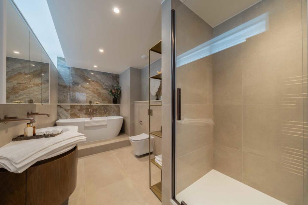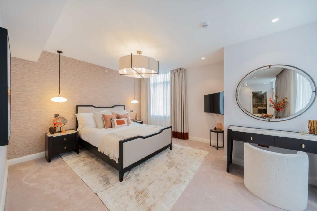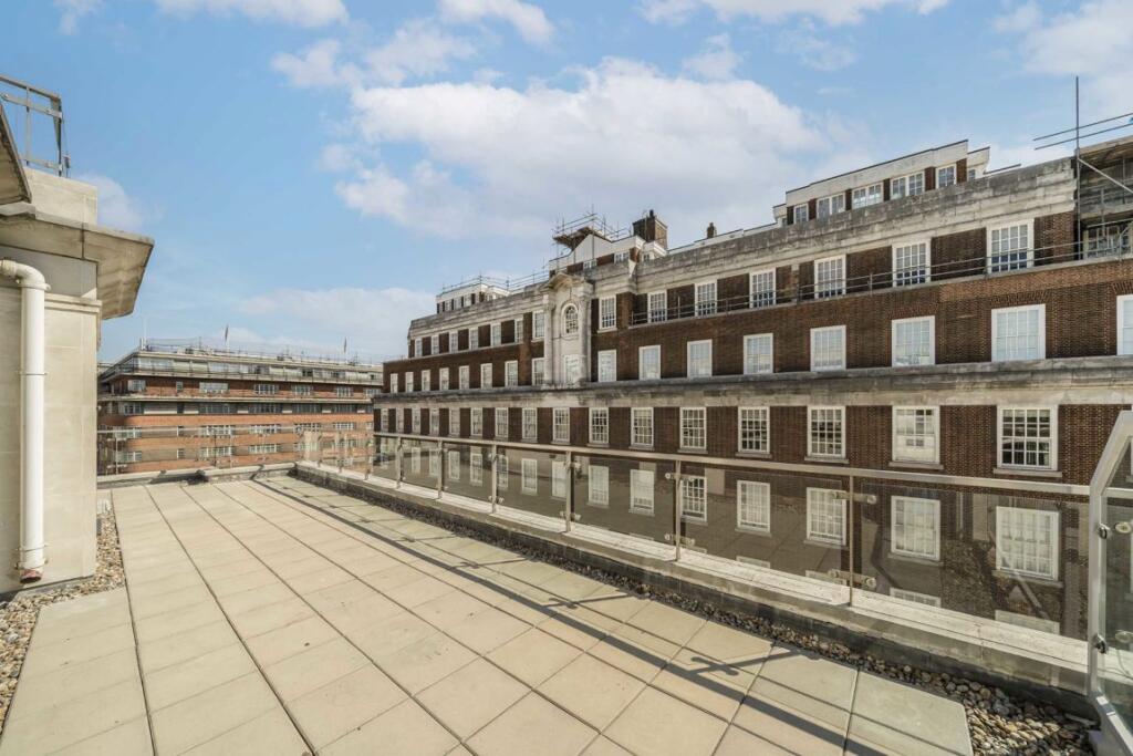 This stunning newly refurbished two bedroom, two bathroom apartment is set over the fifth to seventh floors and benefits from a 24 hour concierge and three private terraces that boast views over the London skyline and Hyde Park.