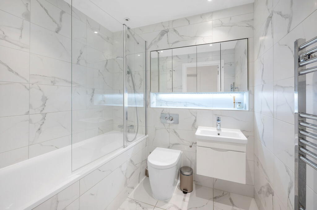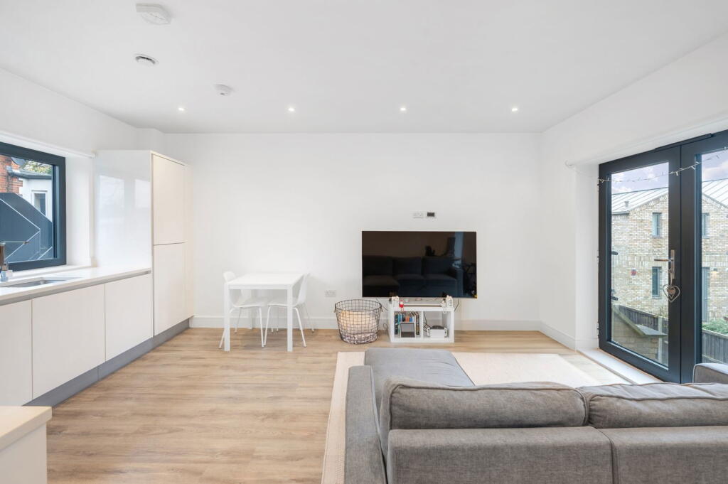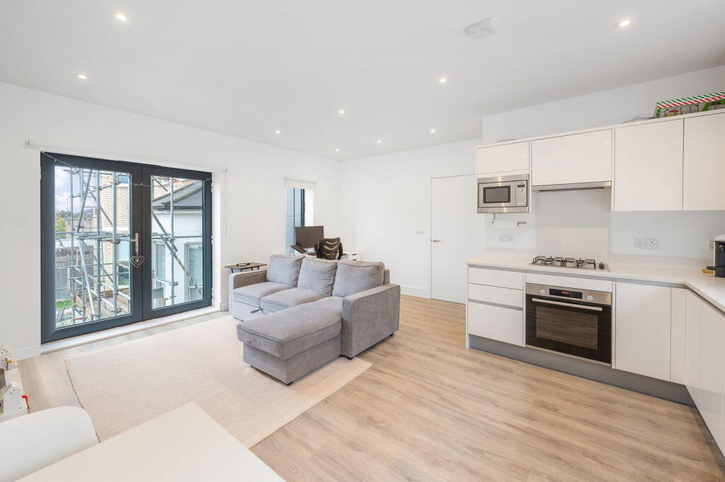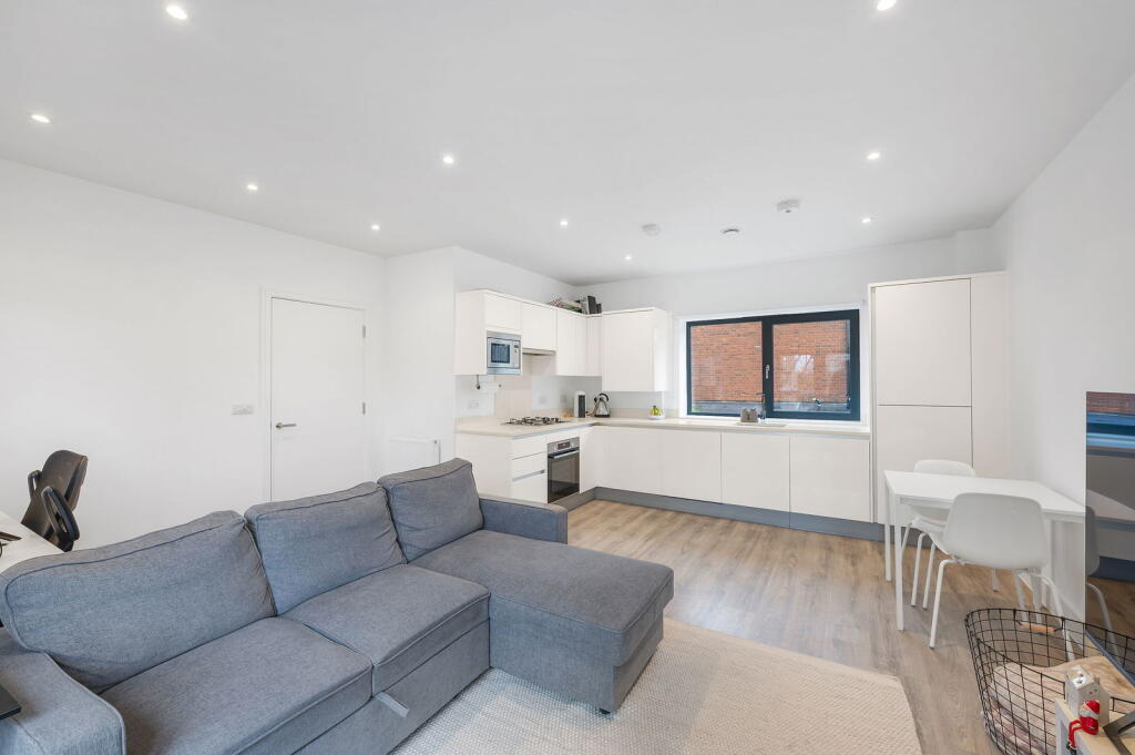 This property is a modern two-bedroom, two-bathroom apartment located in South Croydon, Greater London. The apartment is part of a new development, as evidenced by the modern fixtures and fittings shown in the photographs. It benefits from a private outdoor space and is within close proximity to South Croydon train station and several well-regarded schools, including Harris Primary Academy Haling Park (rated Outstanding by Ofsted). The area has an average house price of £409,864 and an average price per sqft of £456. The list price of £350,000 appears reasonable considering the modern condition of the apartment, its convenient location, and the relatively lower average prices of comparable nearby apartments. However, the lack of plot size information limits a complete assessment of the land value.