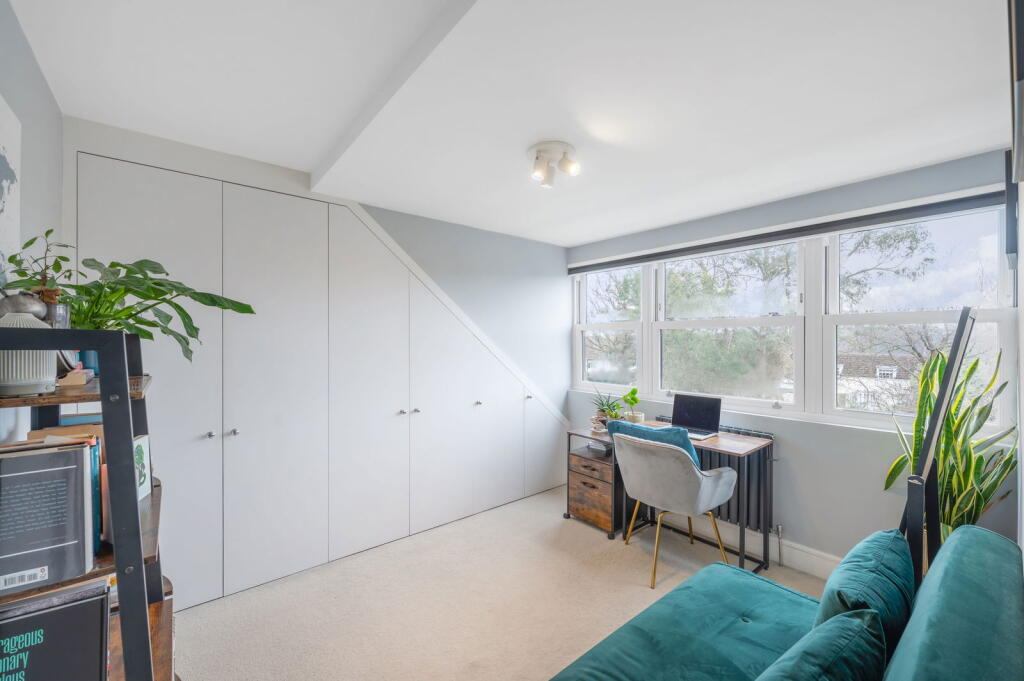 Share of Freehold, beautifully presented, bright, and spacious two-bedroom apartment in a highly sought-after location, directly overlooking the charming Green in Woodside.