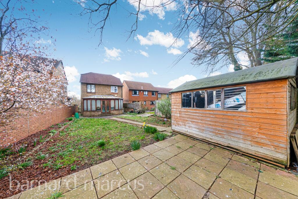 The house itself appears to be in good condition, though the images do not show the full extent of the property. The kitchen and bathrooms appear clean and well-maintained, and there is a conservatory which extends the living space. The garden is of a reasonable size and includes a shed, providing additional storage space.